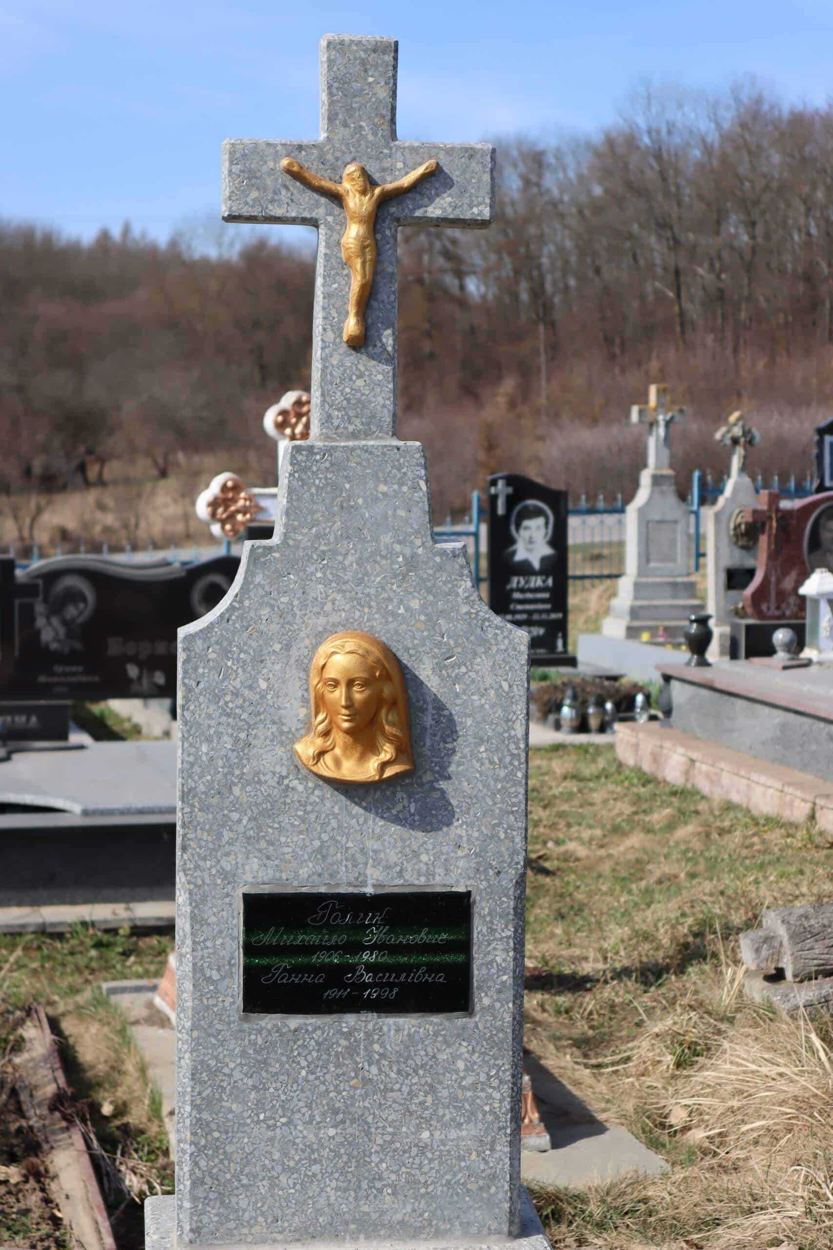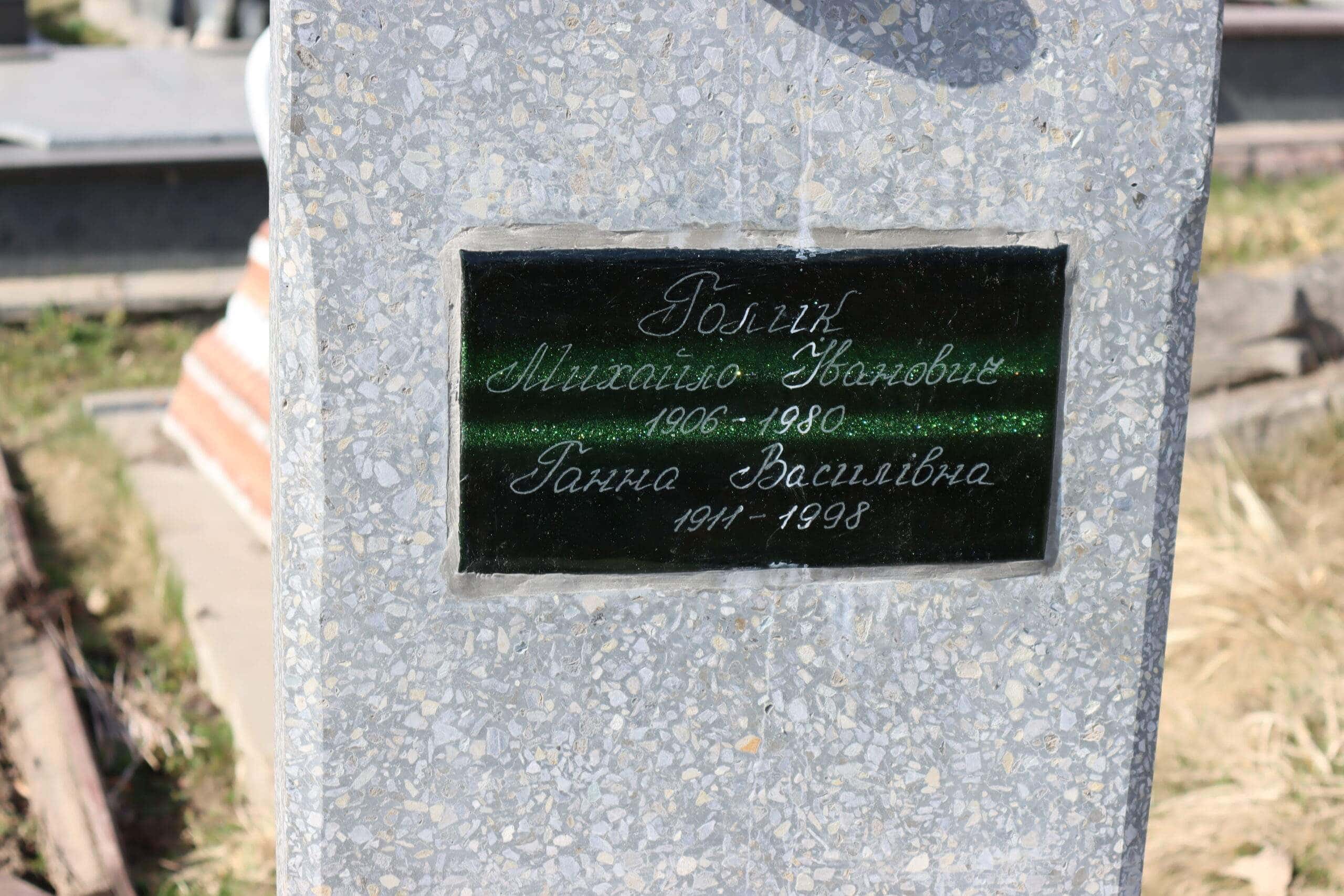 Номер могили: 397Похований (на): ГОЛИК Михайло Іванович 1906 – 1980 ГОЛИК Ганна Василівна 1911 – 1998Матеріал: мармурова крихта, бетон, граніт ПЕРЕГЛЯНУТИ НА КАРТІ Переглядів: 4Категорії: ЦвітоваТеги: Buchach cemeteriesБучачКладовищаМогилаЦвітова 0 коментарівЗалишити відповідь Скасувати коментарВаша e-mail адреса не оприлюднюватиметься. Обов’язкові поля позначені * Ім'я * Email * Сайт Що в вас на думці? Зберегти моє ім'я, e-mail, та адресу сайту в цьому браузері для моїх подальших коментарів.
