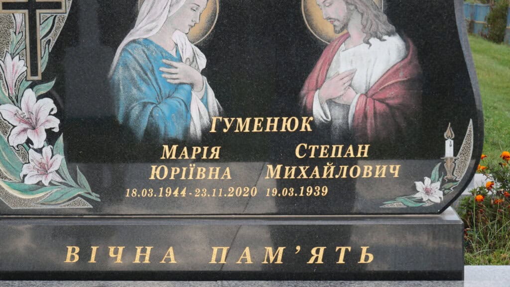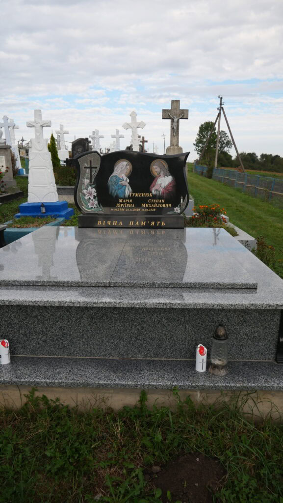 Надпис: “Гуменюк Марія Юріївна 18.03.1944-23.11.2020 Гуменюк Степан Михайлович 19.03.1938 – […]”