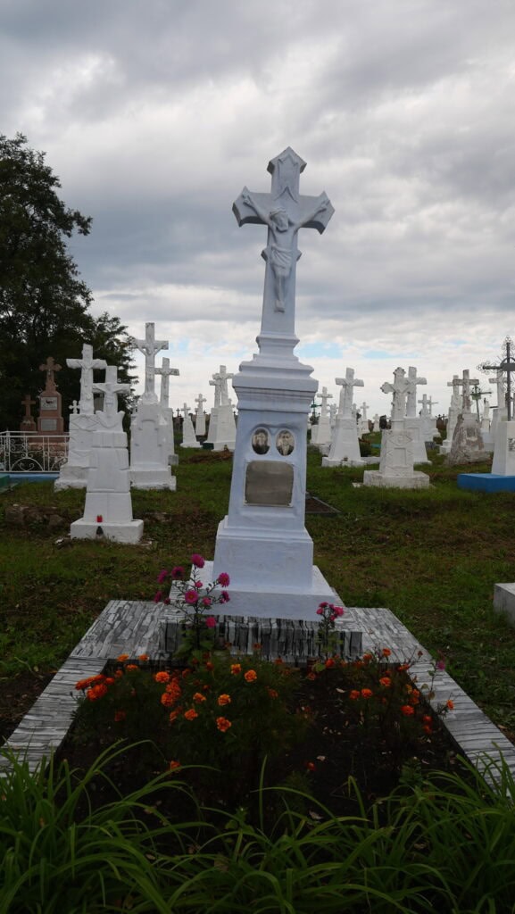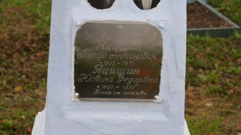 Надпис: “Тут спочивають Яцишин Петро Антонович 1905-1971 Яцишин Юстина Федорівна 1907-1977 Вічна їм пам’ять”