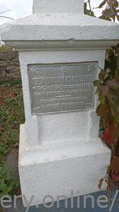 Напис: ІЕРЕЙ НИКОЛАЙ СЬМЯНОВИЧЬ 1842-16(28) сентября 1893 р. ВЬЧНАЯ ЕМУ ПАМЯТЬ И ЗЕМЛЯ ПЕРОМЬ. ПОДЬ КРЕСТОМЬ МОЯ МОЛИЛА НА КРЕСТЬ МОЛЯ ЛЮБОВЬ