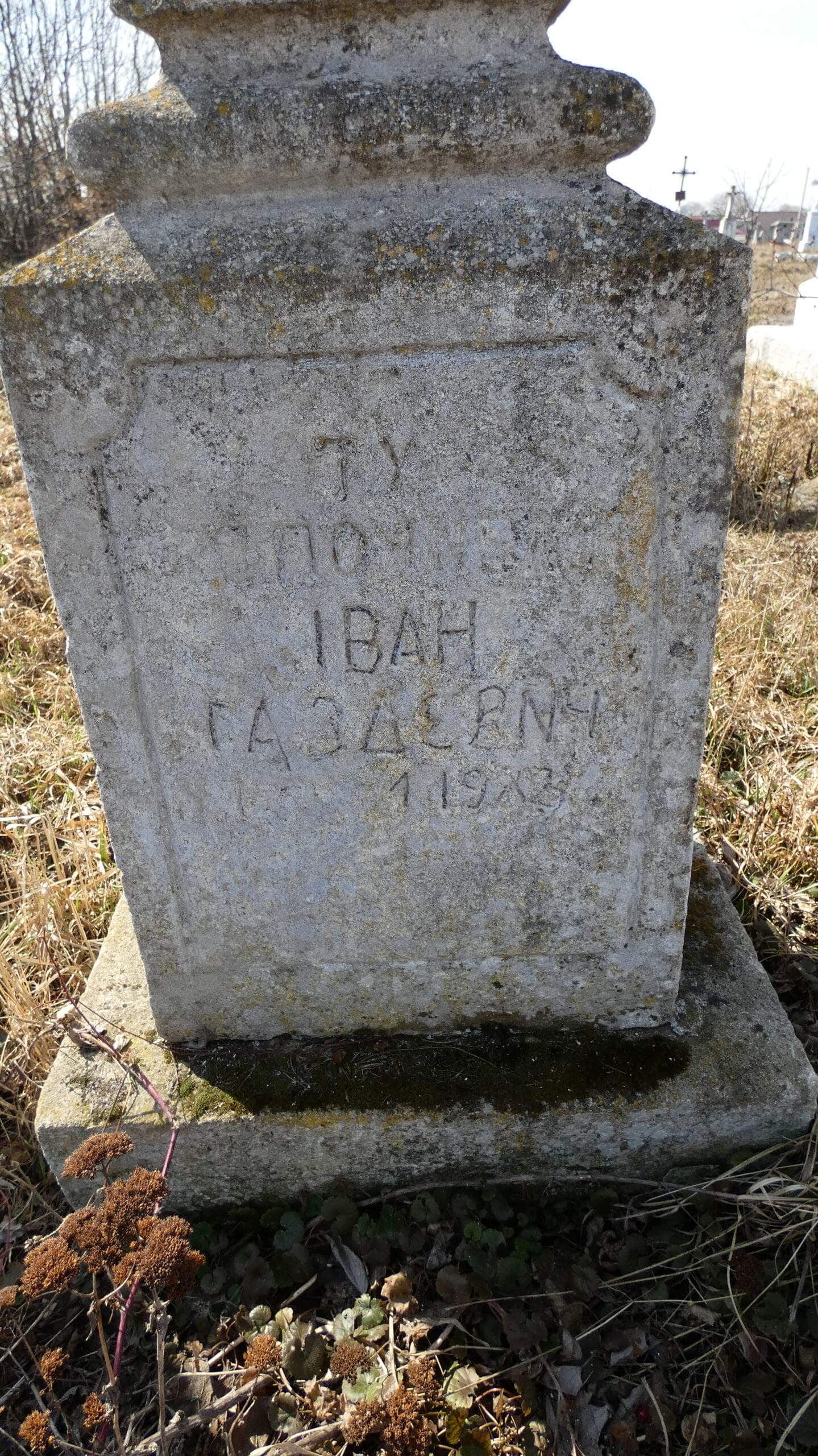 Номер могили: 485Номер кварталу: 2Похований (на): ІВАН ГАЗДЕВИЧ.1933Матеріал: Бетон/залізобетон/ ПЕРЕГЛЯНУТИ НА КАРТІ Переглядів: 15Категорії: ЗеленаТеги: Buchach cemeteriesБучачЗеленаКладовищаМогила 0 коментарівЗалишити відповідь Скасувати коментарВаша e-mail адреса не оприлюднюватиметься. Обов’язкові поля позначені * Ім'я * Email * Сайт Що в вас на думці? Зберегти моє ім'я, e-mail, та адресу сайту в цьому браузері для моїх подальших коментарів.