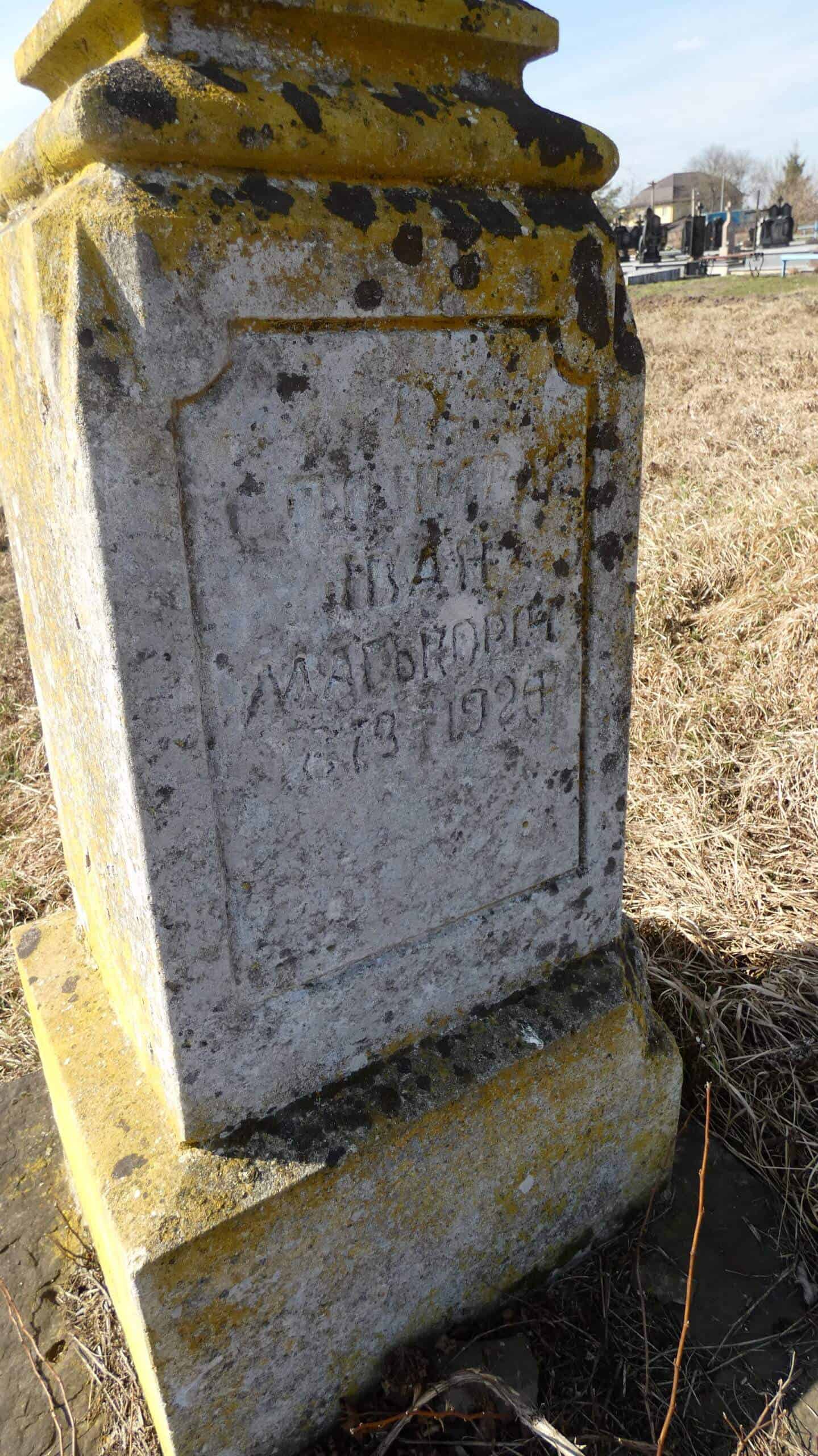 Номер могили: 477Номер кварталу: 2Похований (на): Іван Маньковіч 1879 — 1929Матеріал: Бетон/залізобетон/ ПЕРЕГЛЯНУТИ НА КАРТІ Переглядів: 6Категорії: ЗеленаТеги: Buchach cemeteriesБучачЗеленаКладовищаМогила 0 коментарівЗалишити відповідь Скасувати коментарВаша e-mail адреса не оприлюднюватиметься. Обов’язкові поля позначені * Ім'я * Email * Сайт Що в вас на думці? Зберегти моє ім'я, e-mail, та адресу сайту в цьому браузері для моїх подальших коментарів.