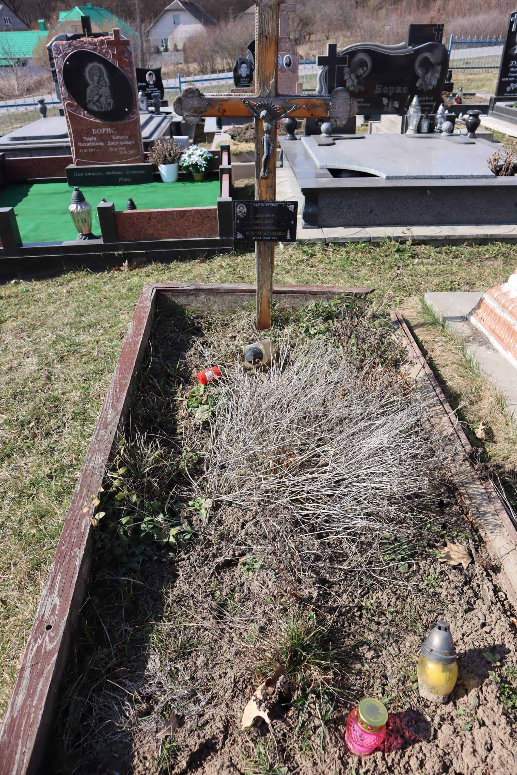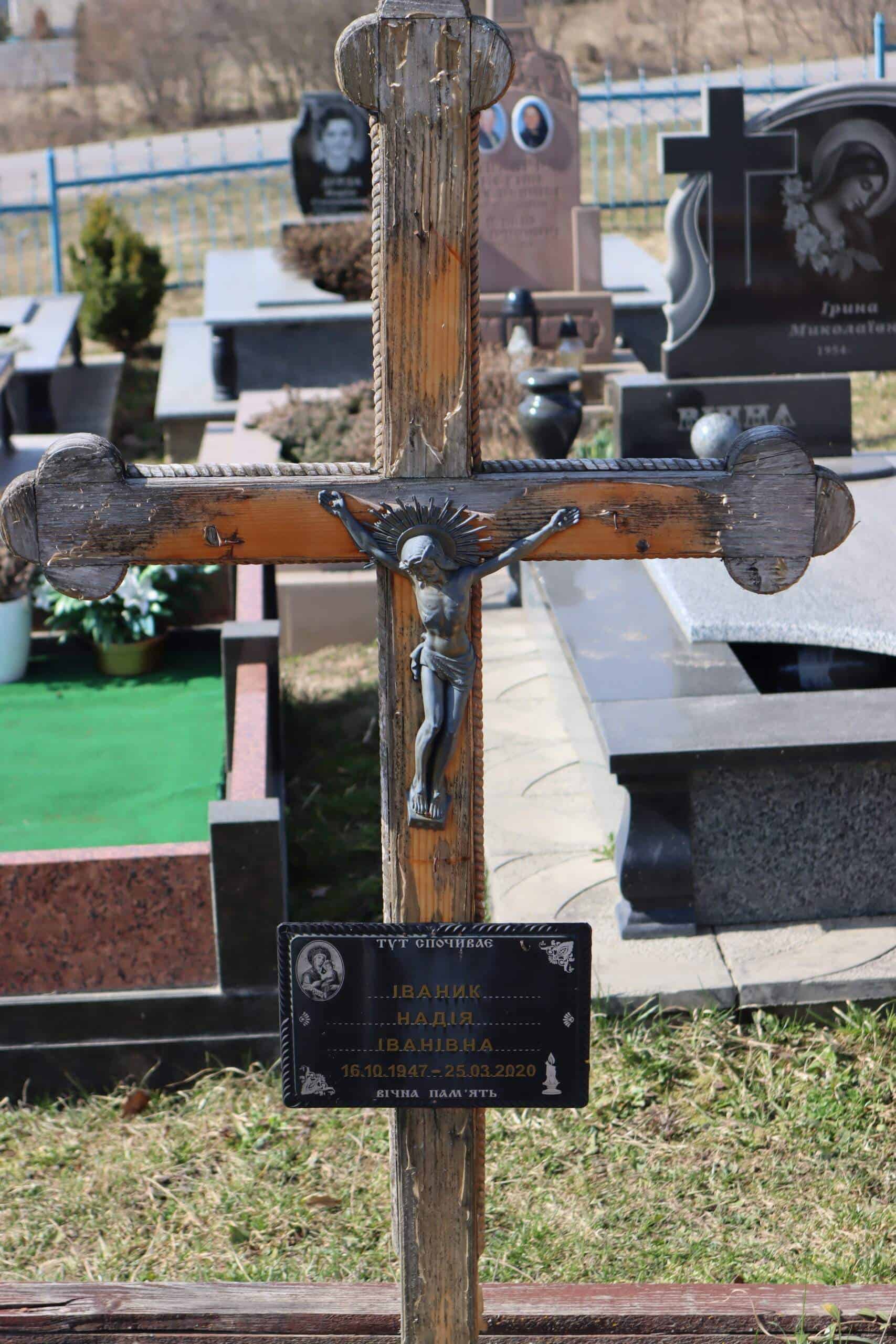 Номер могили: 398Похований (на): ІВАНИК Надія Іванівна 16.10.1947 – 25.03.2020Напис: Вічна пам’ятьМатеріал: дерево ПЕРЕГЛЯНУТИ НА КАРТІ Переглядів: 8Категорії: ЦвітоваТеги: Buchach cemeteriesБучачКладовищаМогилаЦвітова 0 коментарівЗалишити відповідь Скасувати коментарВаша e-mail адреса не оприлюднюватиметься. Обов’язкові поля позначені * Ім'я * Email * Сайт Що в вас на думці? Зберегти моє ім'я, e-mail, та адресу сайту в цьому браузері для моїх подальших коментарів.