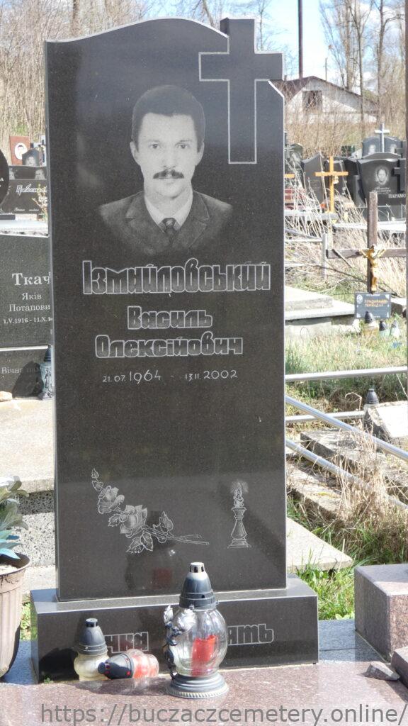 Напис: Ізмайловський Василь Олександрович 21.01.1964-13.11.2002/Измайловский Алексей Алексанович 19.VI.1918-II.VII.1990/ Ізмайловська Любов Василівна 3.07.1938/