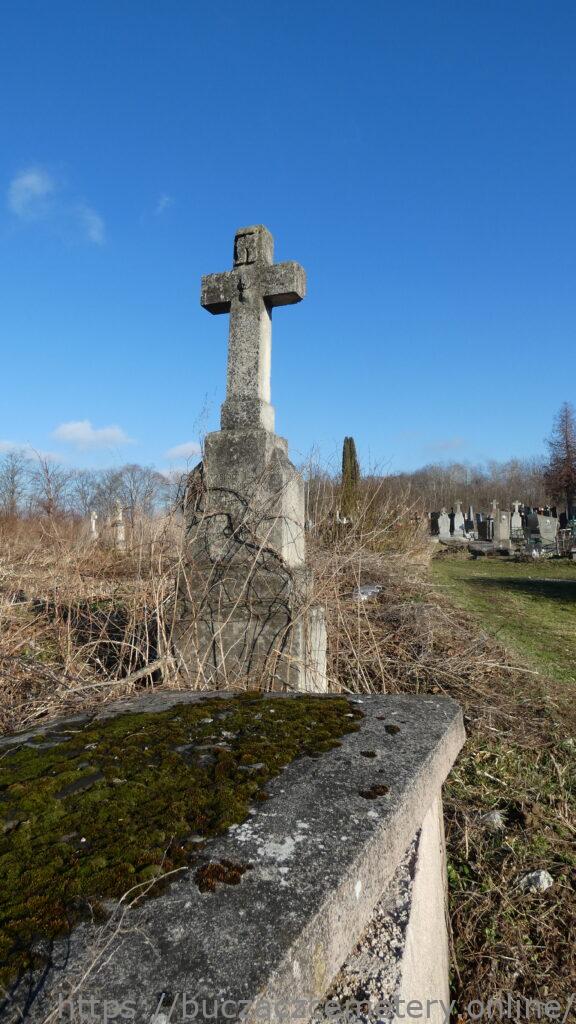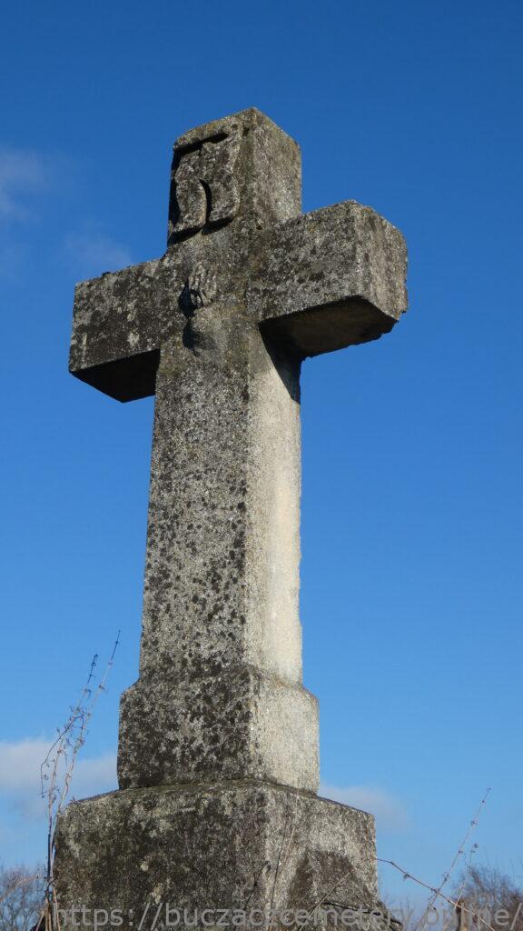Місце поховання позначено хрестом на триступеневому постаменті та підставі. Хрест на постаменті. На перетині рамен рельєф палаючого серця, над ним титулус. Перша і друга сходинки цоколя зі скошеними верхніми краями. Третя сходинка цоколя з прямокутною прибудовою, обрамленою пірамідами, з гравійованим написом на лицьовій частині.
