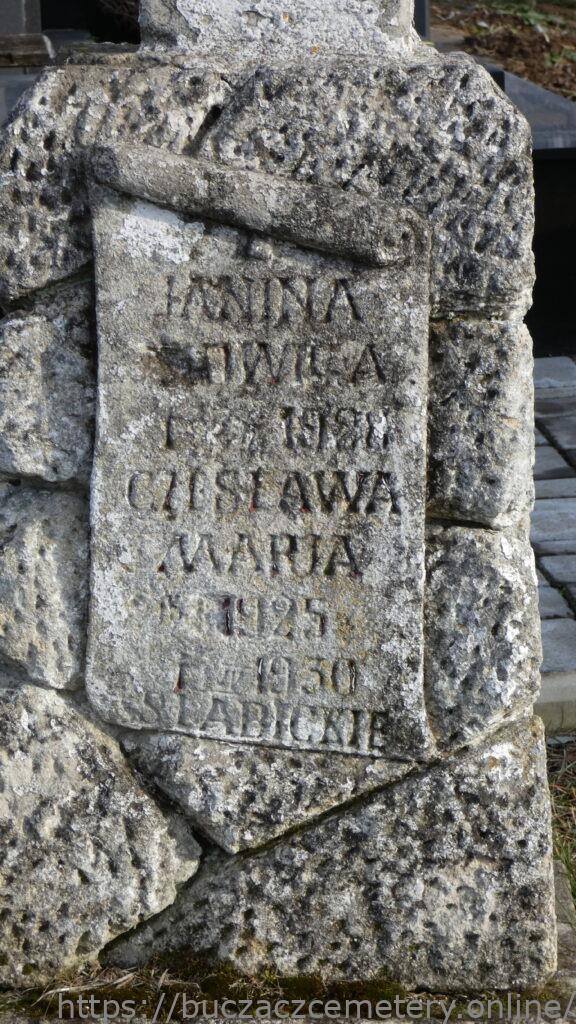JANINA / [JA]DWIGA / + 25 [V] 1928 / CZESŁAWA / MARIA / 15 […] 1925 / + I/IV 1930 / SŁABICKIE //.