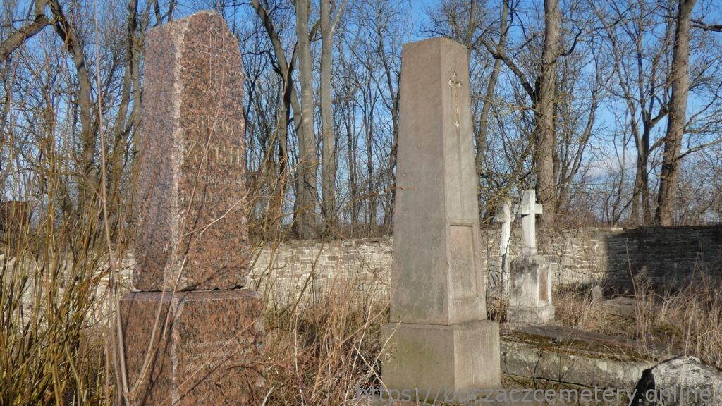 Місце поховання позначене обеліском на двоступеневому постаменті з червоного граніту та двоступеневій основі з пісковику. На передній частині обеліска вигравіюваний хрест із ромбоподібними раменами, під ним вигравіюваний напис (1). У правому верхньому куті першої сходинки цоколя спереду є вигравіюваний підпис. На другій сходинці плінфи спереду вигравіювано напис (2). З передньої сторони є огорожа, спільна з надгробком Кароліни Шуттової, у вигляді двох стовпів, з’єднаних чавунними прутами.