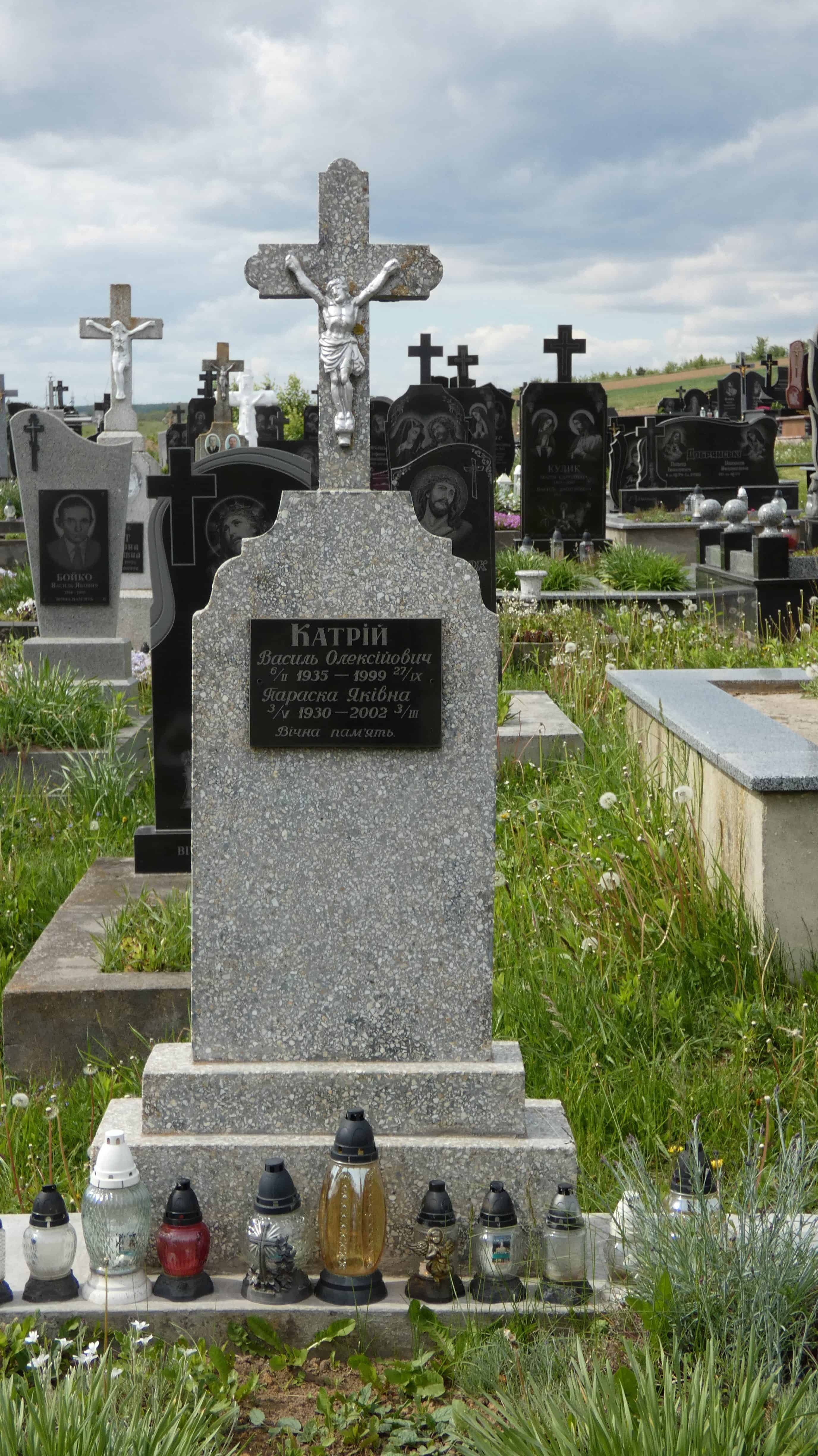 Похований (на): Катрій Василь Олексійович 6.02.1935-27.09.1999 Катрій Параска Яківна 3.05.1930-203.03.2002