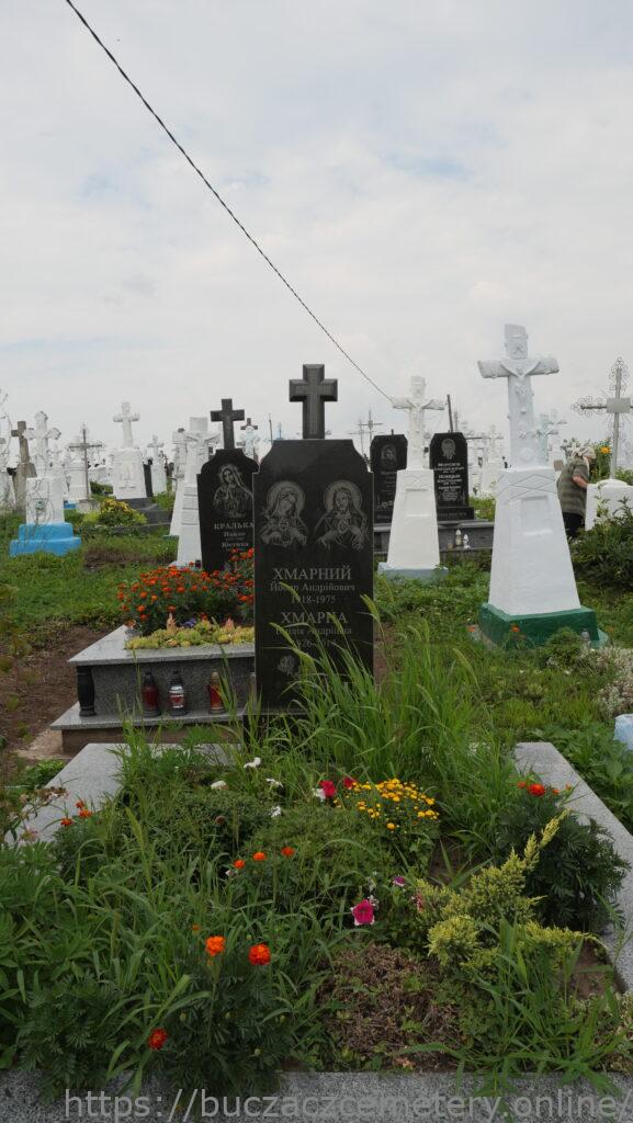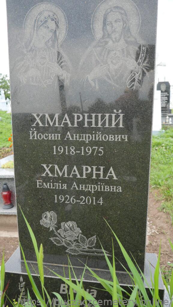 Надпис: “Хмарний Йосип Андрійович 1918-1975 Хмарна Емілія Андріївна 1926-2014 Вічна пам’ять”