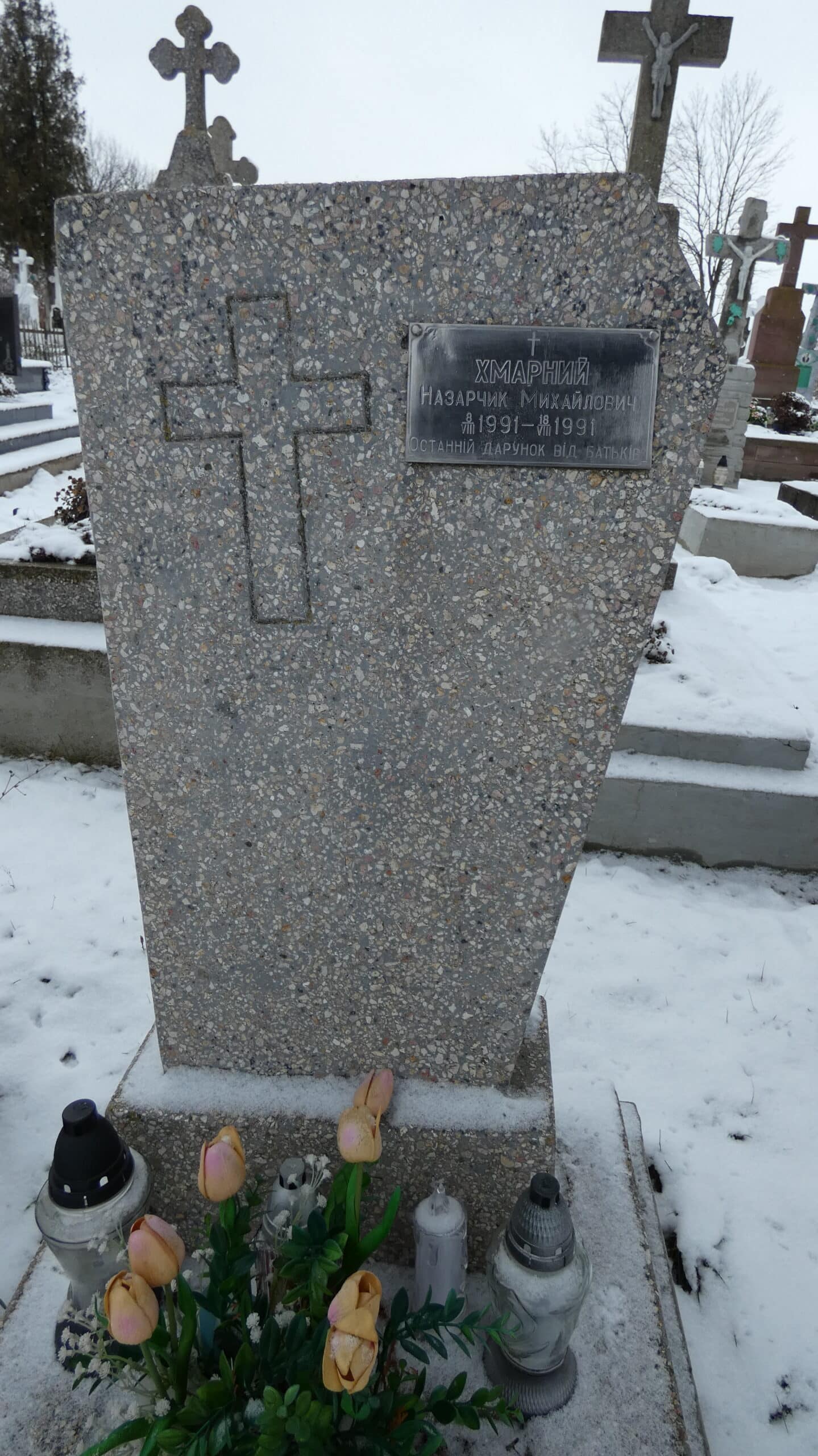 Похований (на): Хмарний Назарчик Михайлович 8.08.1991-18.08.1991