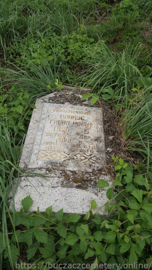 Надпис: “Тут спочиває Климус Ганна Йосиф 1936 -1975 останній дар дорогій мамі і … від дітей і онуків”