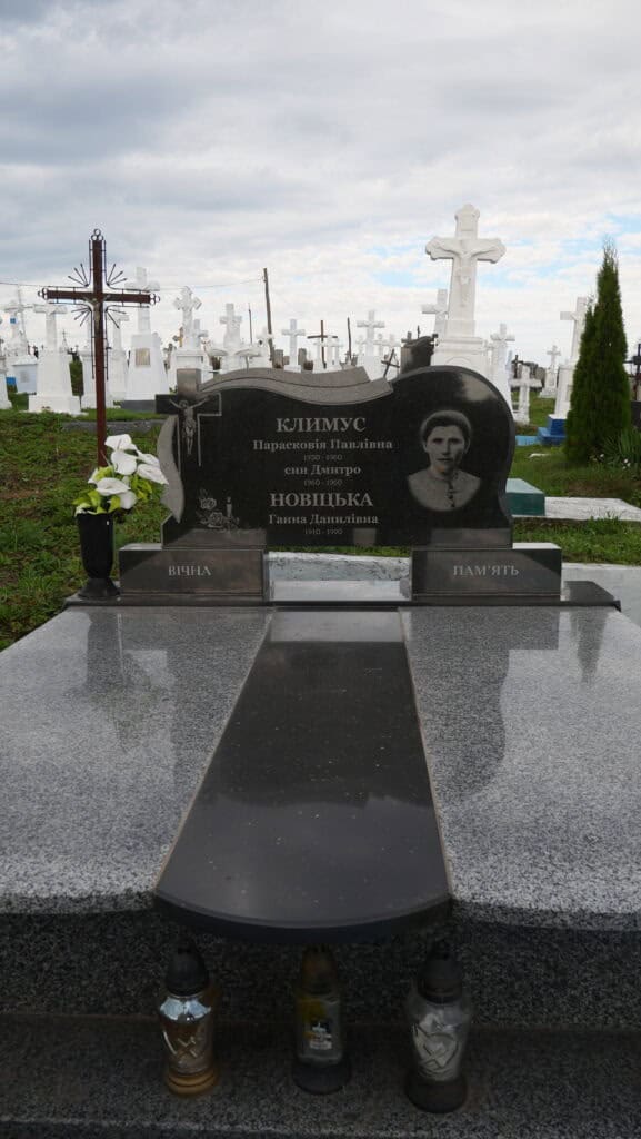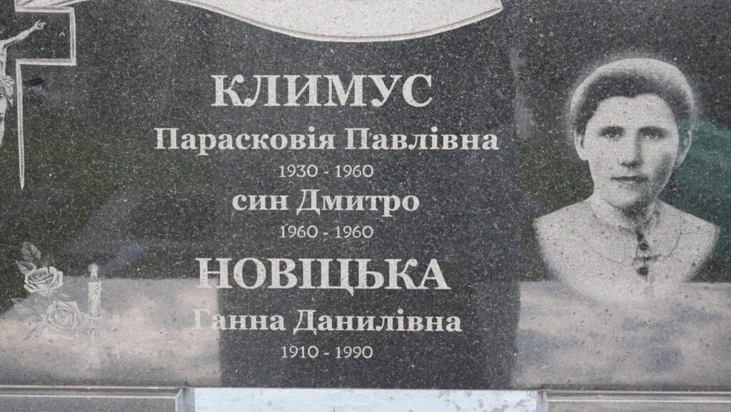 Надпис: “Климус Парасковія Павлівна 1930-1960 син Дмитро 1960-1960 Новіцька Ганна Данилівна 1910-1990”