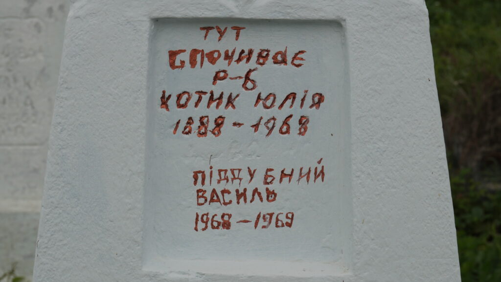Показати на картіНадпис: “Тут спочиває Р-Б Котик Юлія 1888-1968 Піддубний Василь 1968 – 1969”Матеріал: пісковик Переглядів: 81Категорії: БобулинціТеги: Бобулинці кладовищеМогила 0 коментарівЗалишити відповідь Скасувати коментарВаша e-mail адреса не оприлюднюватиметься. Обов’язкові поля позначені * Ім'я * Email * Сайт Що в вас на думці? Зберегти моє ім'я, e-mail, та адресу сайту в цьому браузері для моїх подальших коментарів.