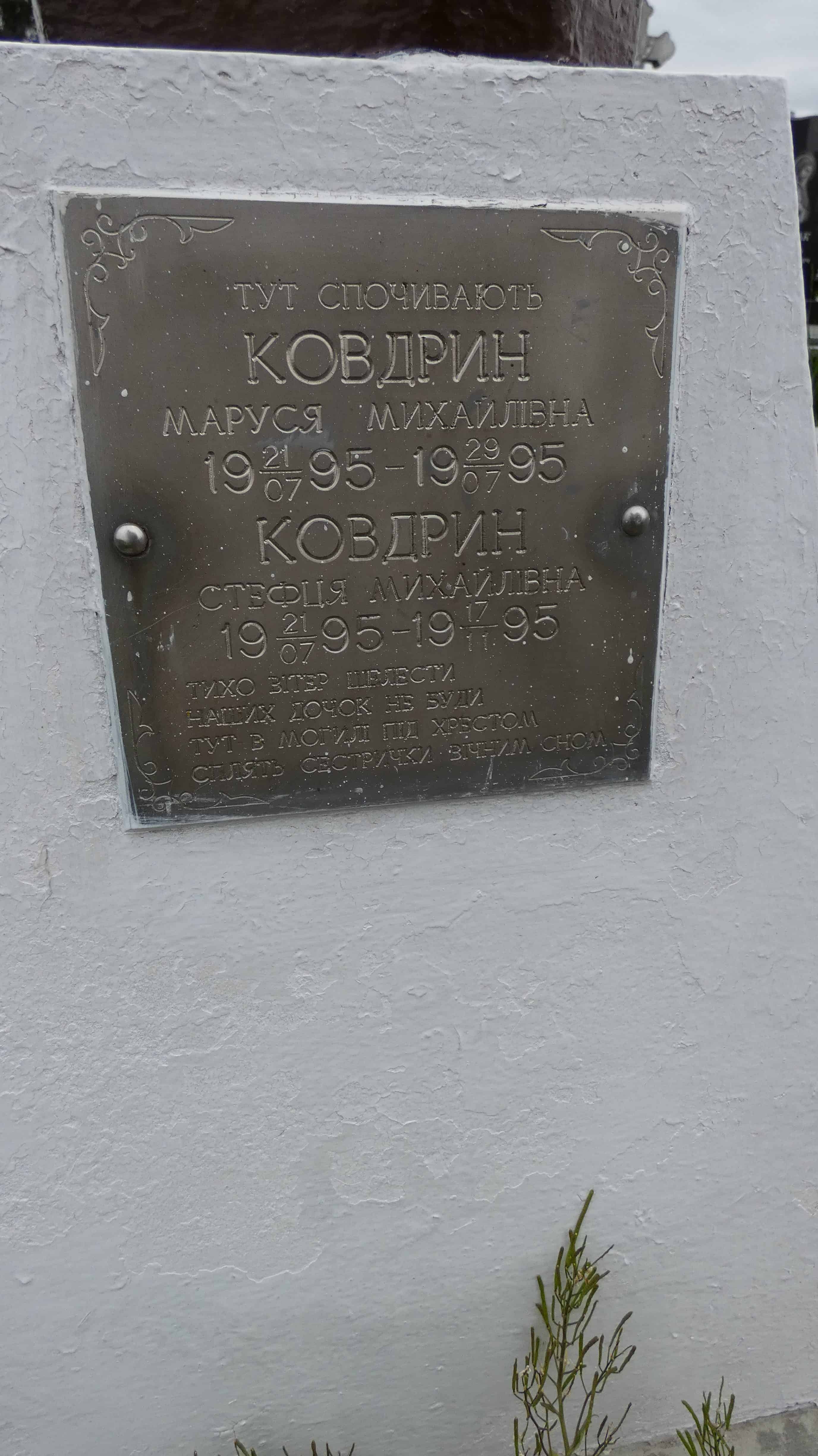 Похований (на): Ковдрин Маруся Михайлівна 21.07.1995-29.077.1995 Ковдрин Стефця Михайлівна 21.07.1995-17.11.1995