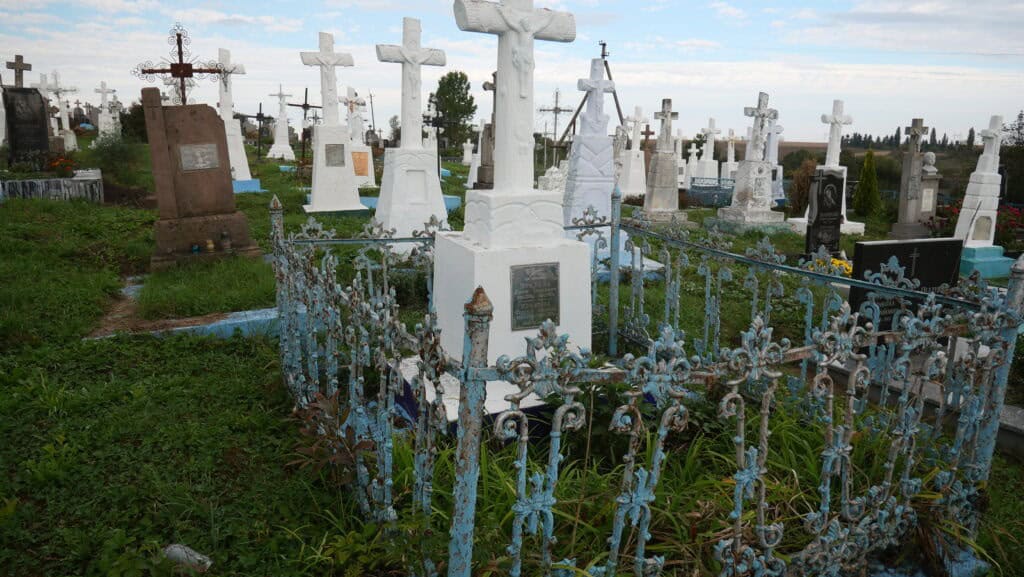 Надпис: “Тут спочивають Кралька Яким Ількович 10.06.1888 – 16.01.1962 Кралька Євдокія Іванівна 09.02.1895 – 23.03.1976 Вічна їм пам’ять”