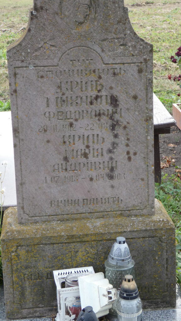 Похований: Кріль Михайло Федорович 20.11.1912- 22.08.1972 Кріль Марія Андріївна 1.077.1918-90.14.2003