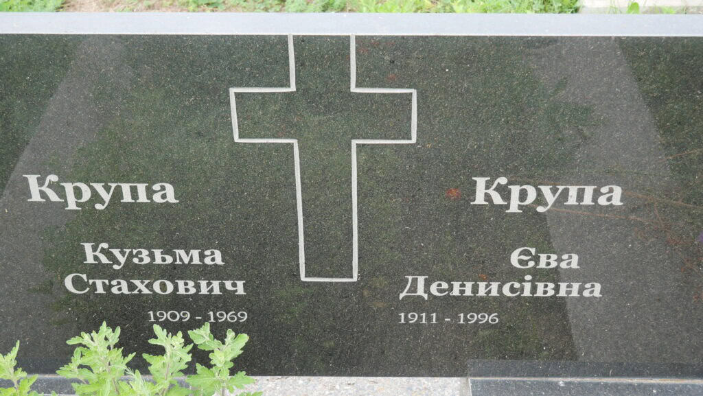 Надпис: “Крупа Кузьма Стахович 1909-1969 Крупа Єва Денисівна 1911-1996”
