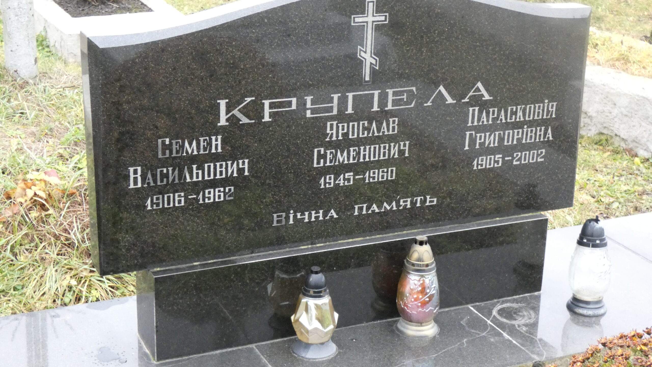 Похований (на): Крупела Семен Васильович 1906-1962 Курпела Ярослав Семенович 1945-1960 Курпела Парасковія Григорівна 1905-2002
