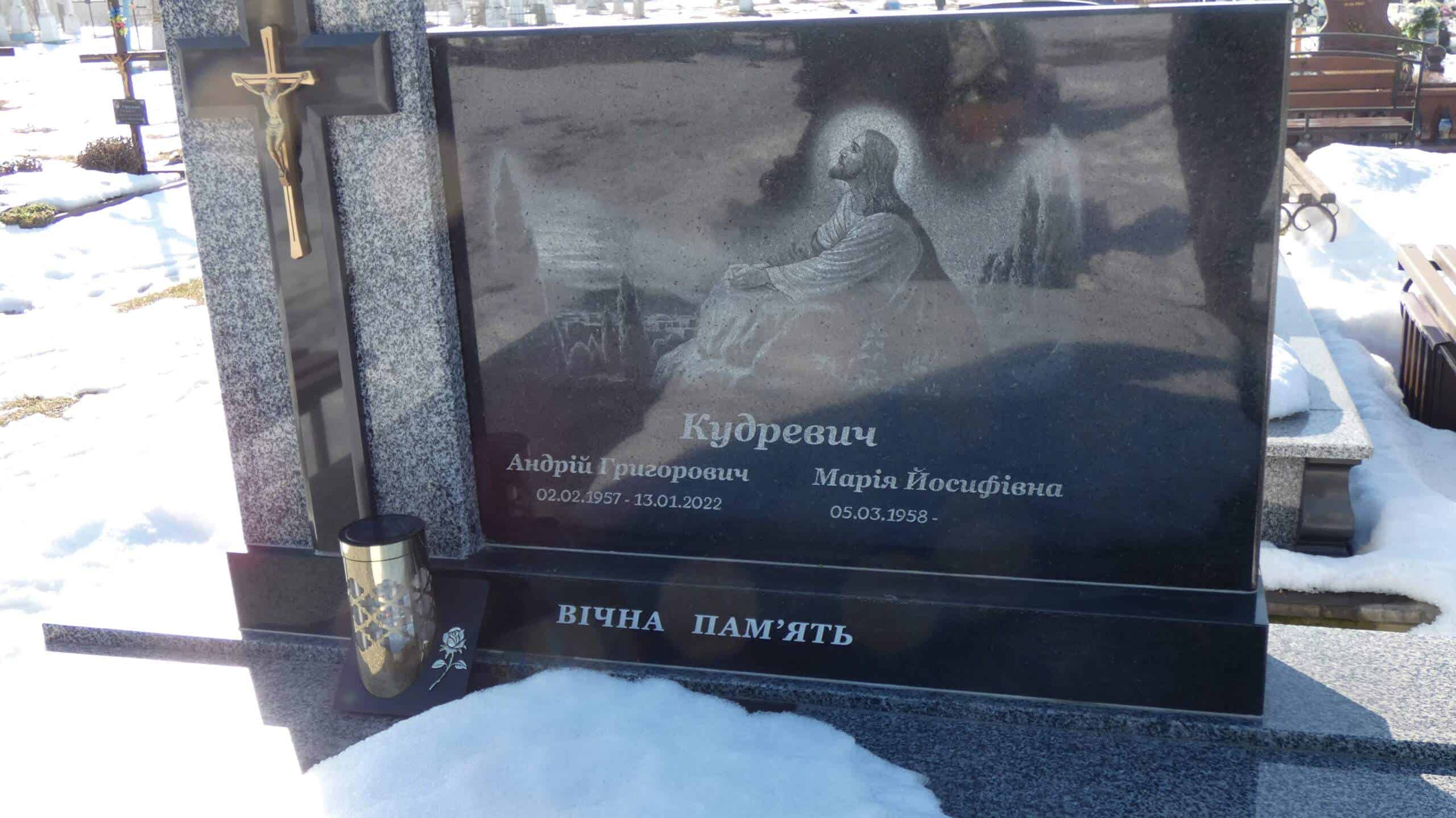 Похований (на): Кудревич Андрій Григорович 02.02.1957-13.01.2022 Кудревич Марія Йосифівна 05.03.1958