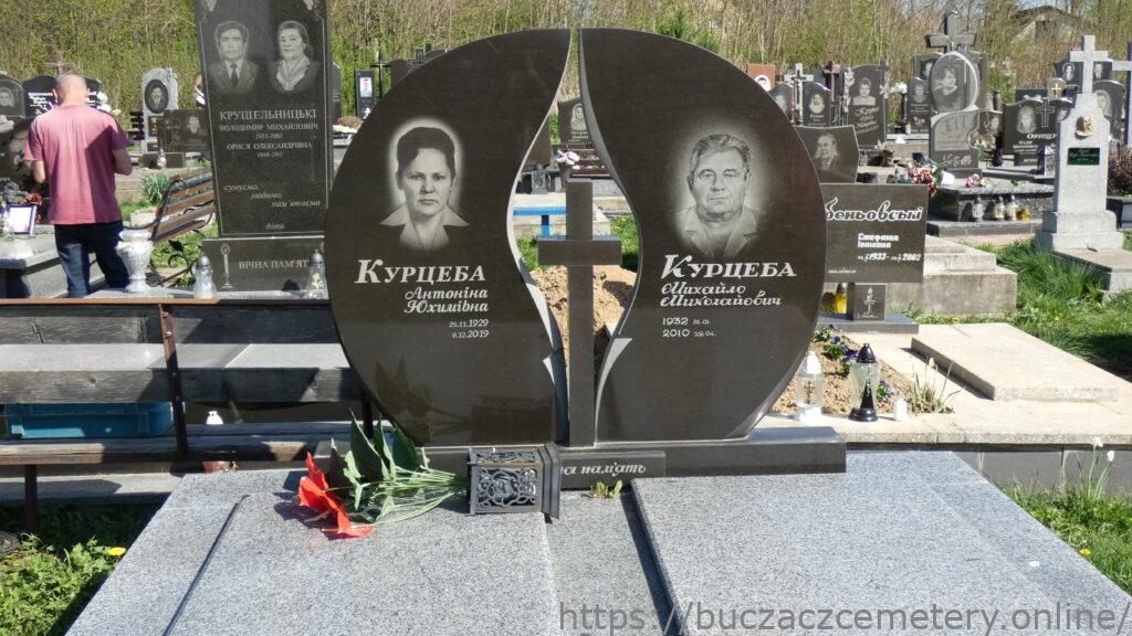 Напис: Курцеба Антоніна Юхимівна 25.11.1929-9.12.2019/ Курцеба Михайло Миколайович 1932.16.01-2010.29.04/ Вічна пам’ять/