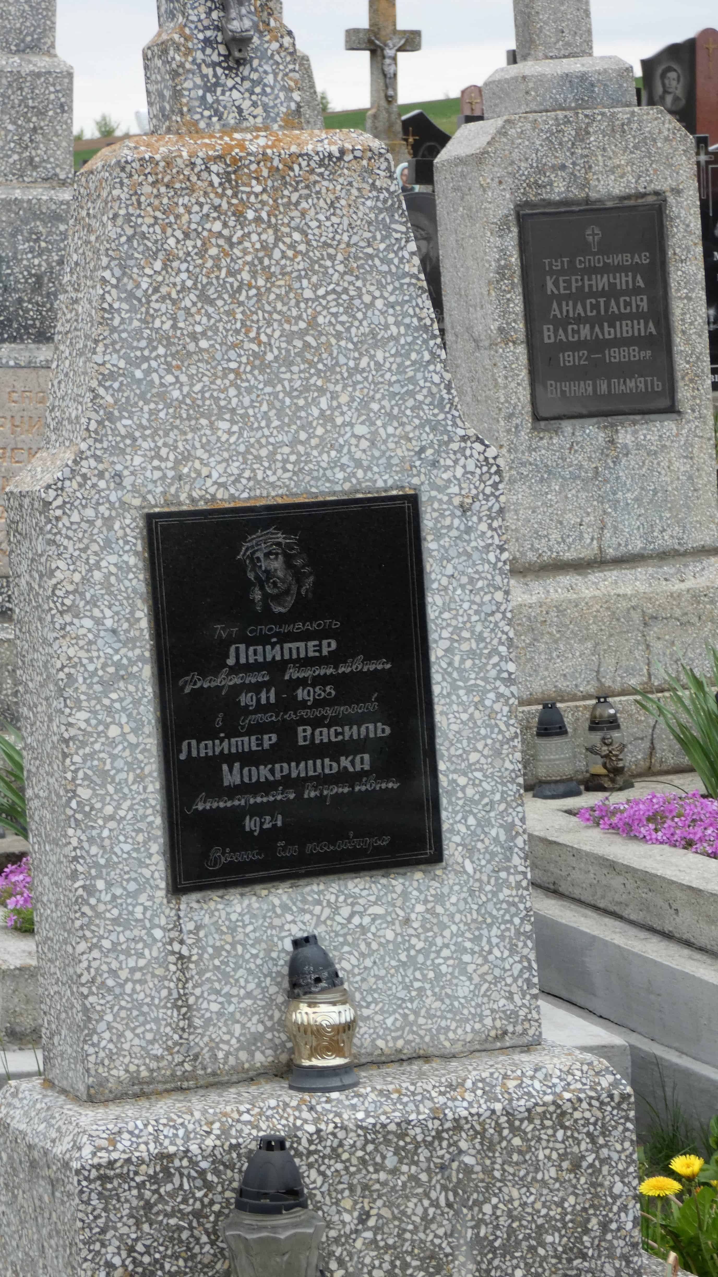 Похований (на): Лайтер Фаврона Кирилівна 1911-1988 Лайтер Василь Мокрицька Анастасія Кирилівна 1924