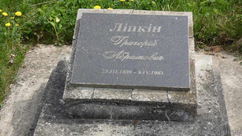 Напис: Ліпкін Григорій Абрамович 25.ІІІ.1998-9.IV.1981