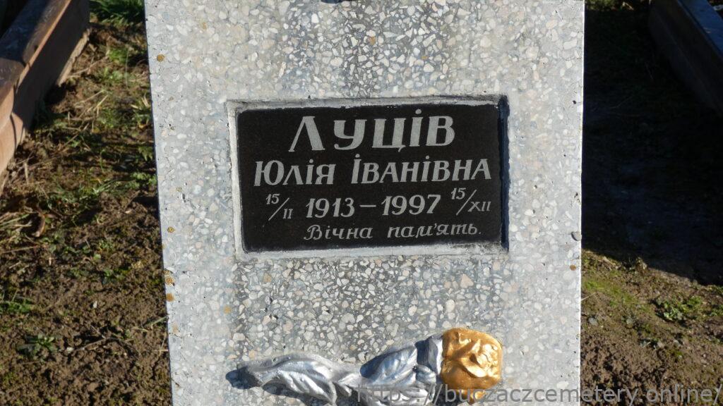 Напис: Луців Юлія Іванівна 15/ІІ 1913-1997 15/ХІІ / Вічна пам’ять