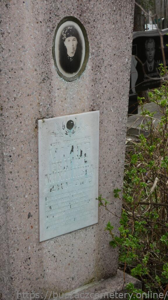 Напис: ТУТ СПОЧИВАЄ/ МАЙОР ЄВДОКІЯ МИХАЙЛІВНА 9.Х.1910-9.ІХ.1972/СПИ СПОКІЙНО ВІЧНИМ СНОМ НАША ДОРОГА МАМО, ПАМ’ЯТЬ ПРО ТЕБЕ НІКОЛИ НЕ ЗГАСНЕВ НАШИХ СЕРЦЯХ./ ОСТАННІЙ ДАР ВІД СИНІВ/ БРАТА/ СЕСТРИ ТА ВНУКІВ./