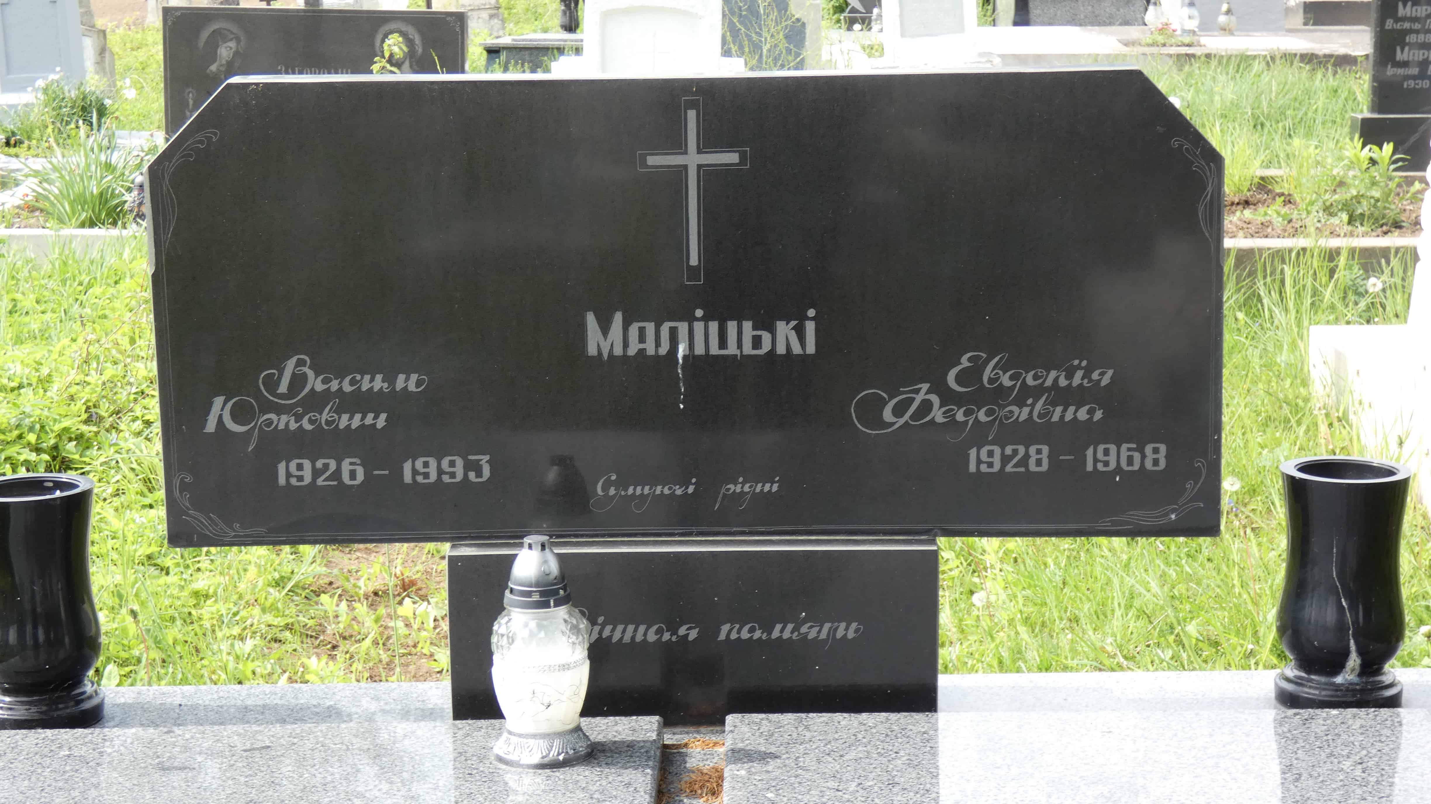 Похований (на): Маліцький Василь Юрійович 1926-1993 Маліцька Євдокія Федорівна 1928-1968