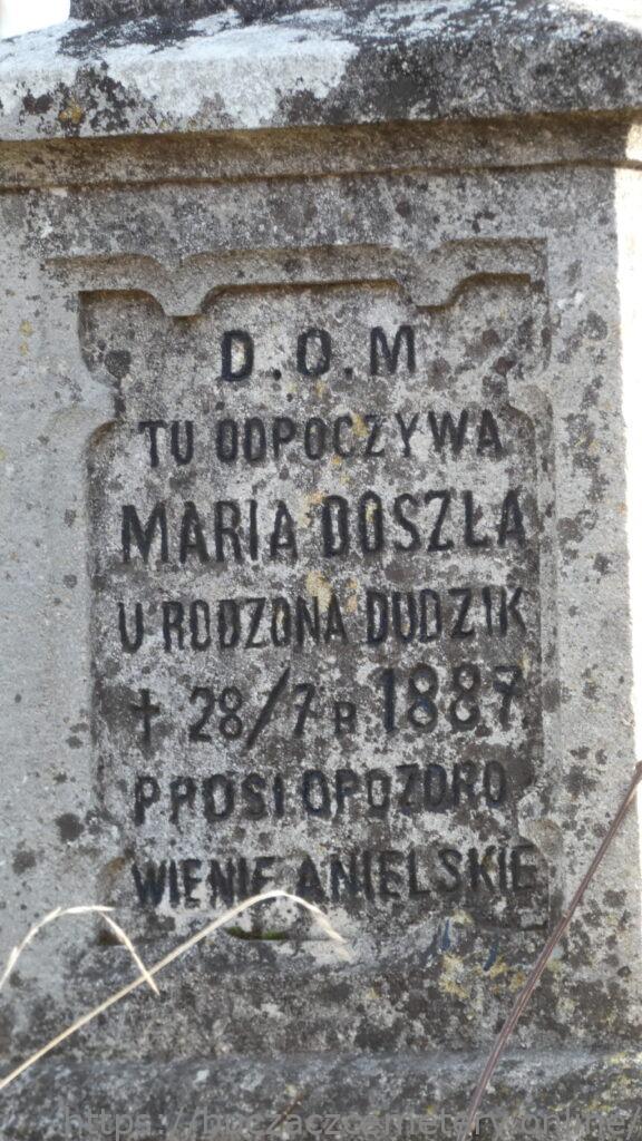 D.O.M / TU ODPOCZYWA / MARIA DOSZLA / WRODZONA DUDZIK / + 28/7 R. 1887 / PROSI O POZDRO / WIENIE ANIELSKIE //.