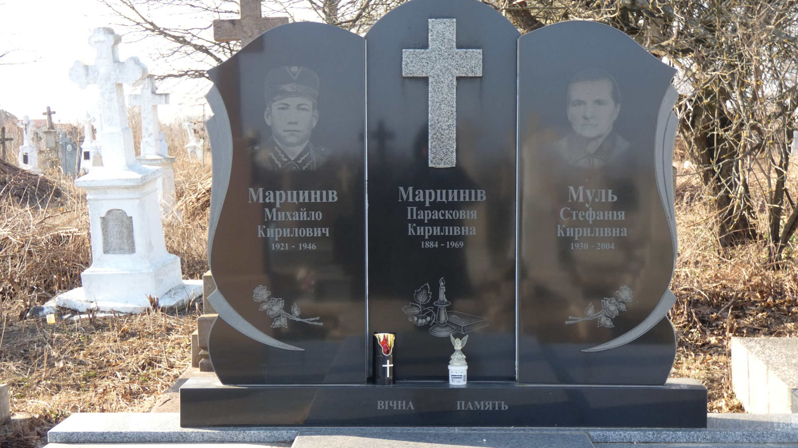 Похований (на): Марцинів Михайло Кирилович 1921-1946 Марцинів Парасковія Кирилівна 1884-1969 Муль Стефанія Кирилівна 1930-2004