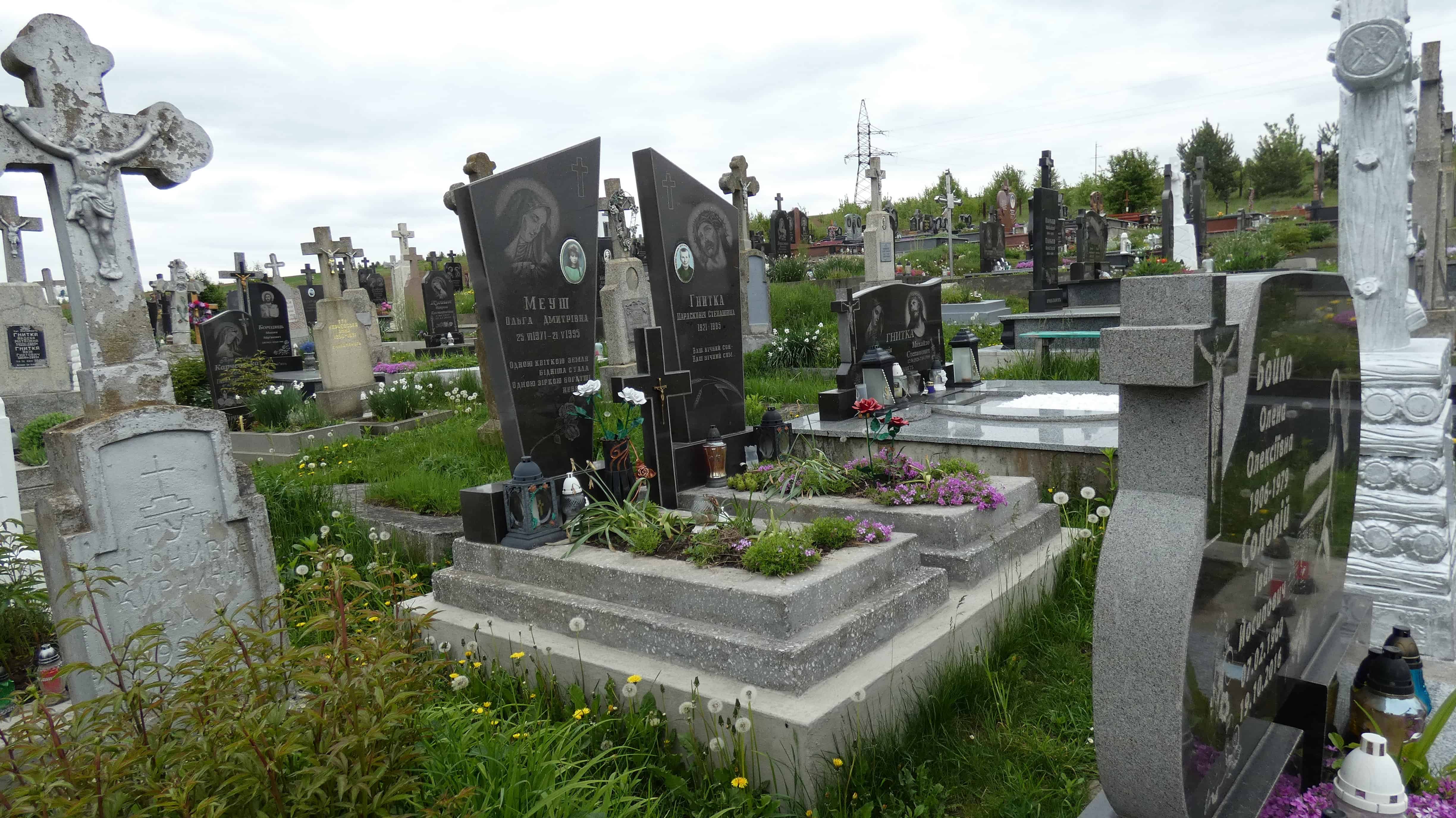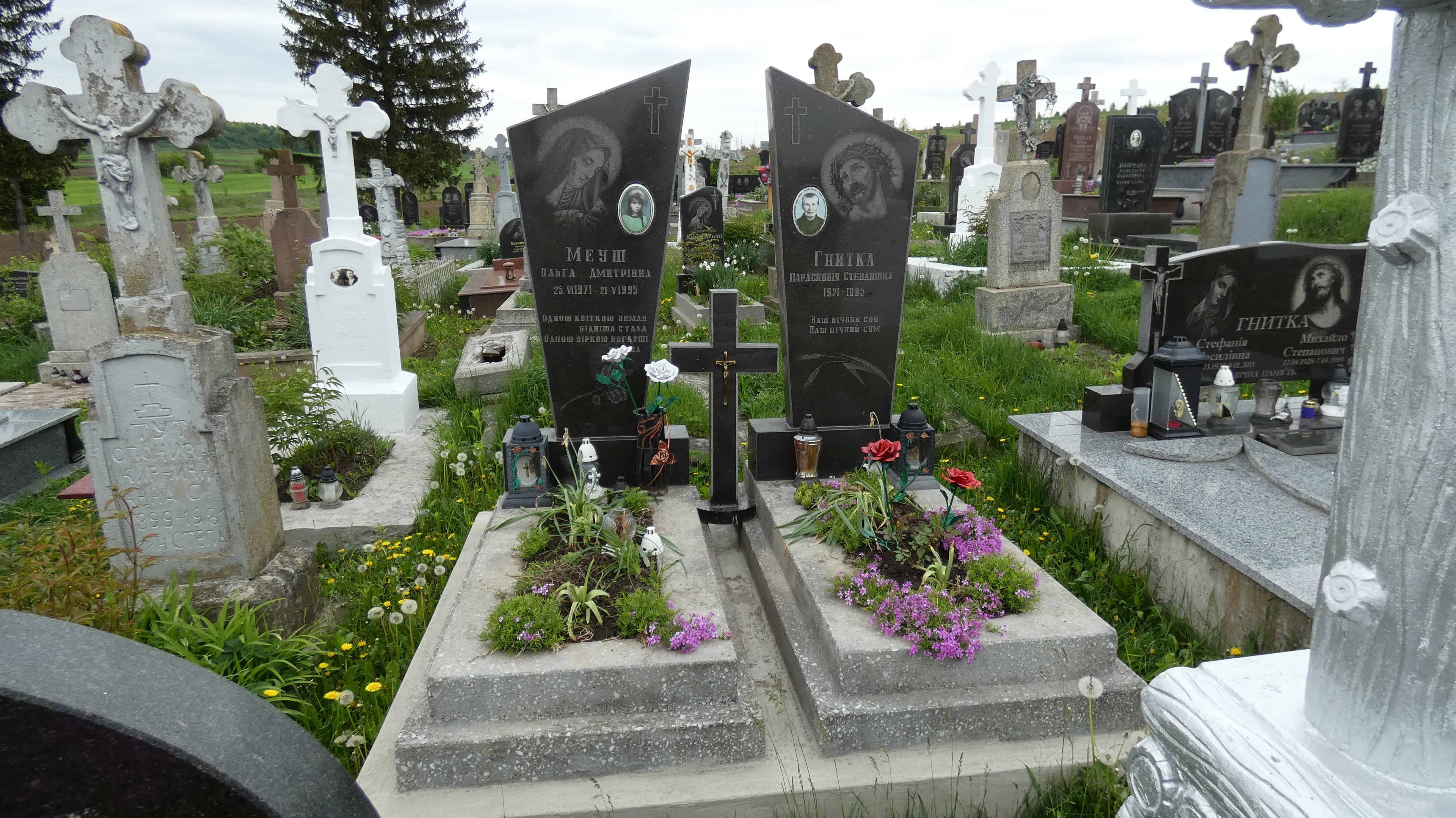 Похований (на): Меуш Ольга Дмитрівна 25.06.1971-21.05.1995 Гнитка Парасковія Степанівна 1921-1995