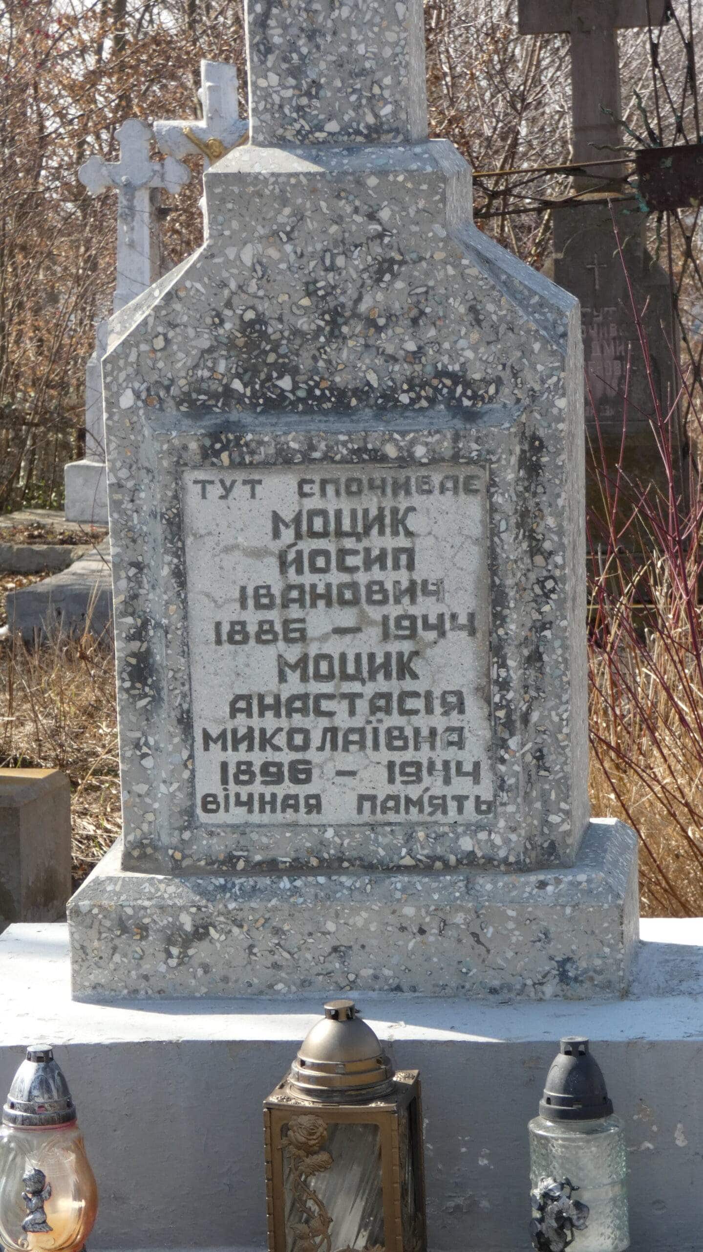 Похований (на): Моцик Йосип Іванович 1886 — 1944 Моцик Анастасія Миколаївна 1896 — 1944