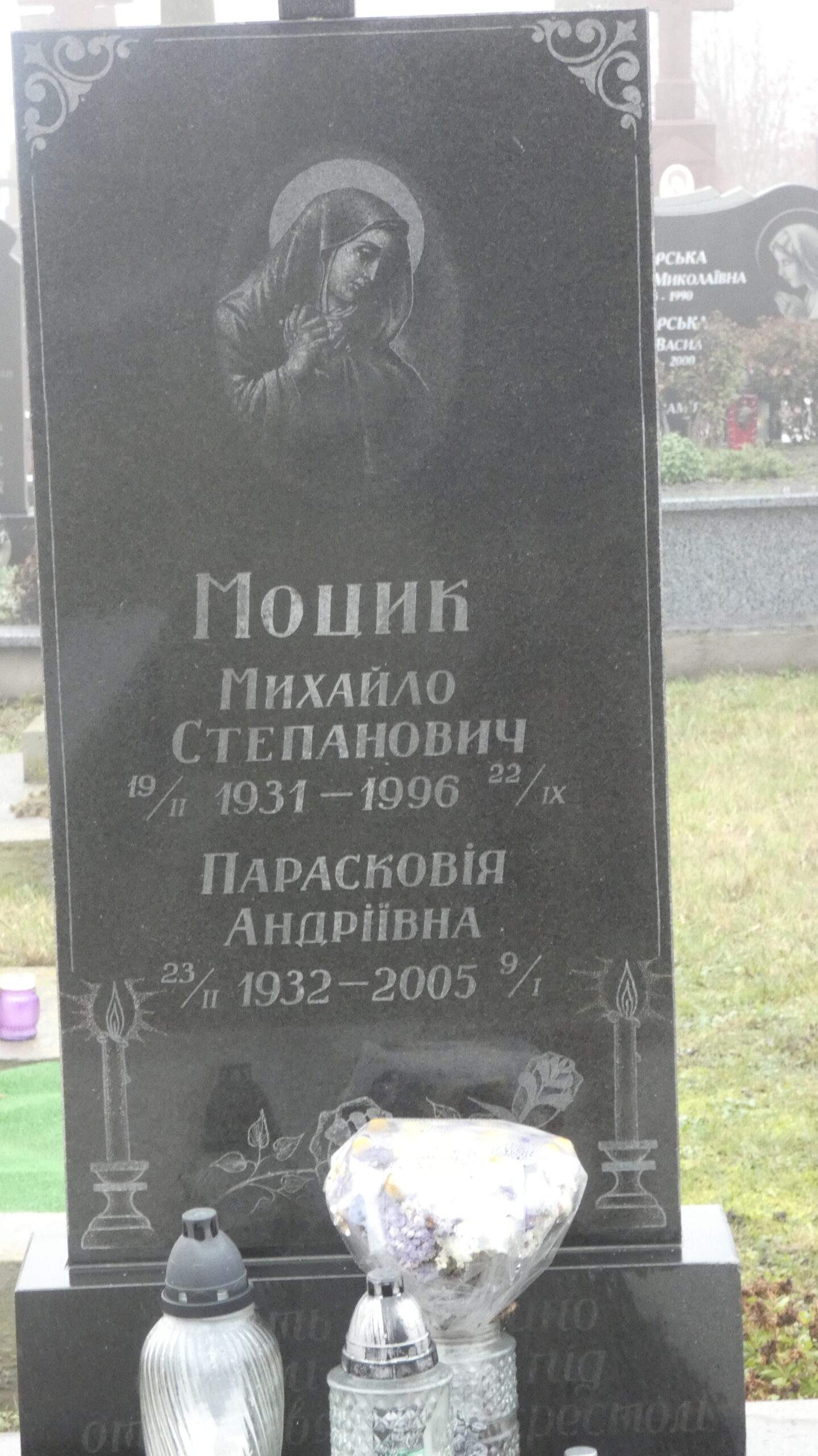 Похований (на): Моцик Михайло Степанович 19.02.1931-22.09.1996 Моцик Парасковія Андріївна 23.02.1932-09.01.2005