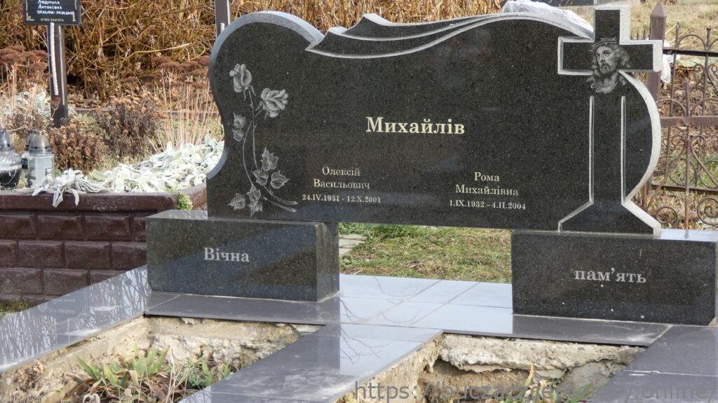 МИХАЙЛІВ/ Олексій Васильович/24.IV.1931-12.X.2001/Рома Михайлівна 1.IX.1932-4.II.2004/ВІЧНА ПАМ’ЯТЬ//