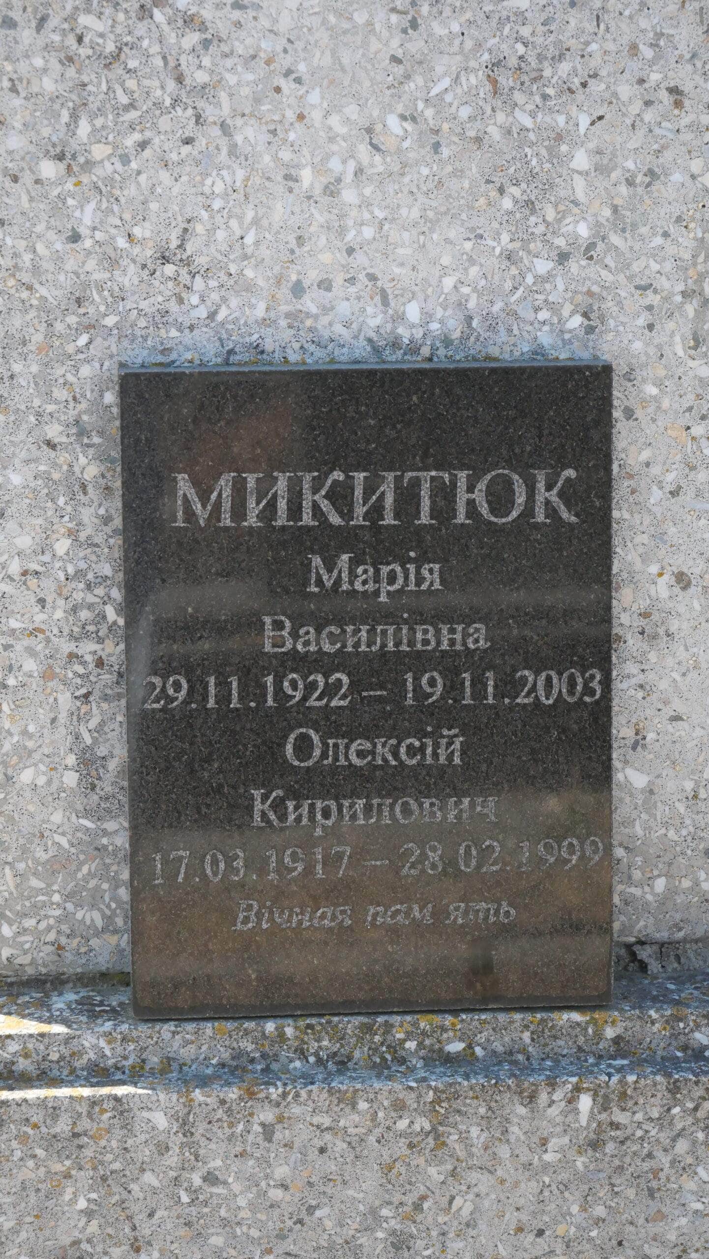 Похований (на): МИКИТЮК Марія Василівна 29.11.192219.11.2003 МИКИТЮК Олексій Кирилович 17.03.1917 – 28.02.1999