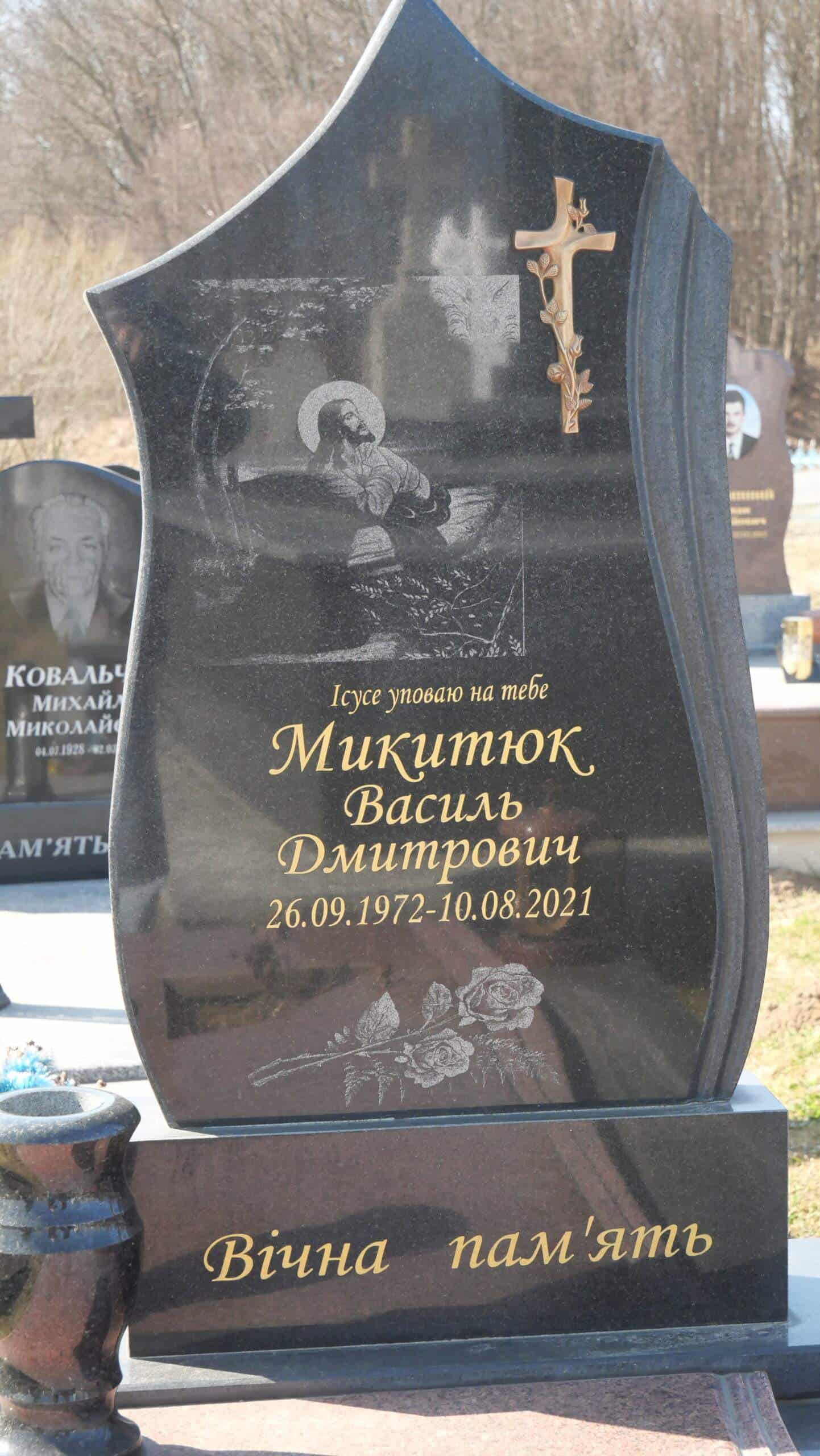 Номер могили: 26Похований (на): МИКИТЮК Дмитро Олексійович 10.07.1936 – 09.05.2018 МИКИТЮК Анна Станіславівна 12.12.1937 – …Напис: «Ніхто не вмирає на землі, Допоки живе в серцях тих, Хто залишився…»Матеріал: граніт ПЕРЕГЛЯНУТИ НА КАРТІ Переглядів: 3