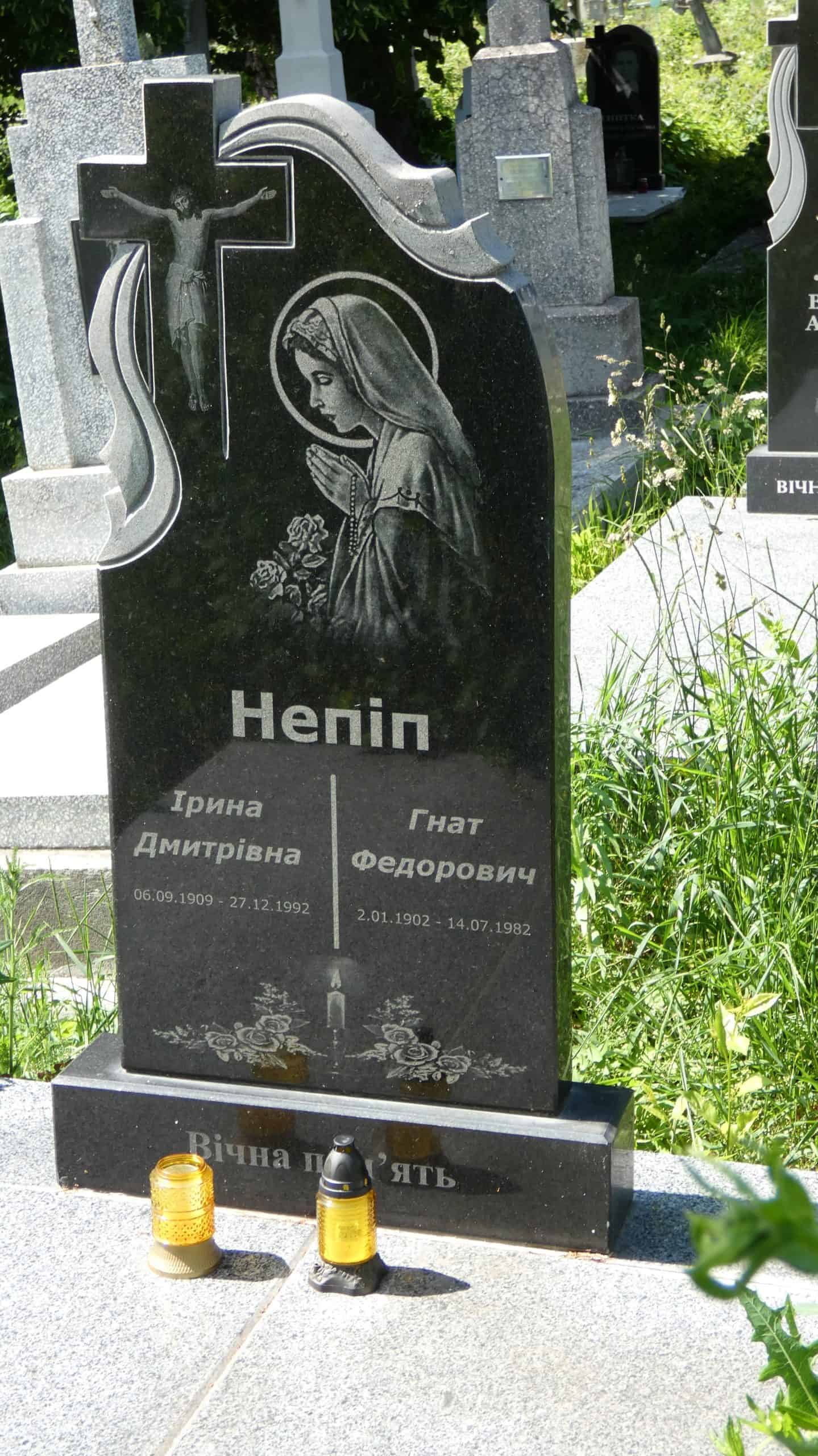 Похований (на): Непіп Ірина Дмитрівна 06.09.1909-27.12.1992 Непіп Гнат Федорович 02.01.1902-14.07.1982