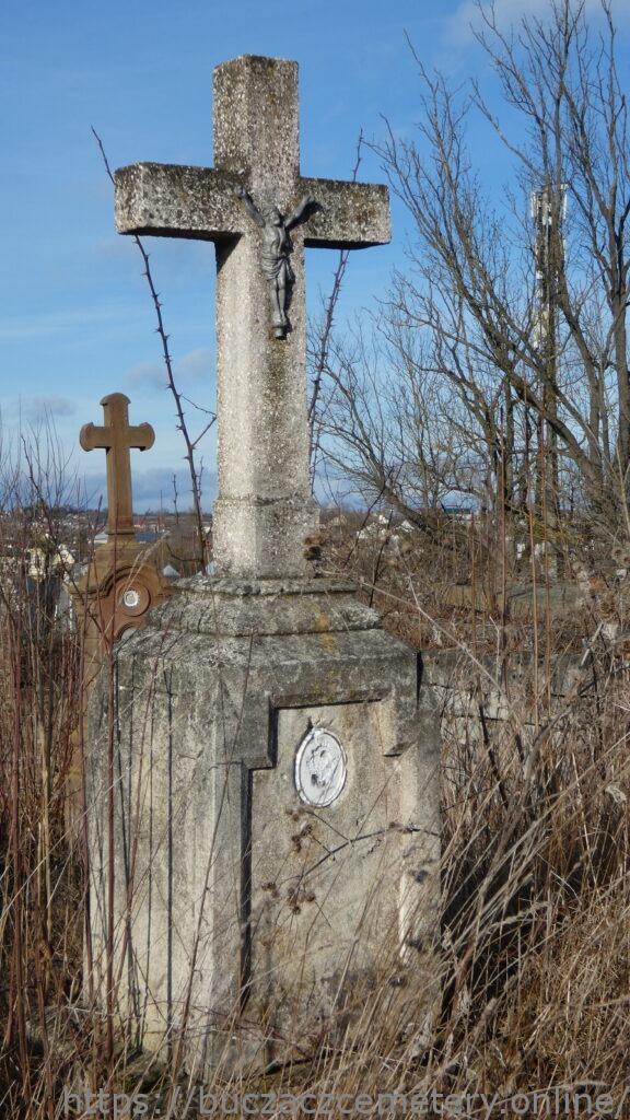 Місце поховання позначено хрестом на триступеневому постаменті та підставі. Хрест на постаменті. На хресті розп’яття з литого металу. Друга сходинка цоколя з профільованими верхніми краями. На підставі овальна світлина – розбита. Третя сходинка плінтуса зі скошеними верхніми краями.