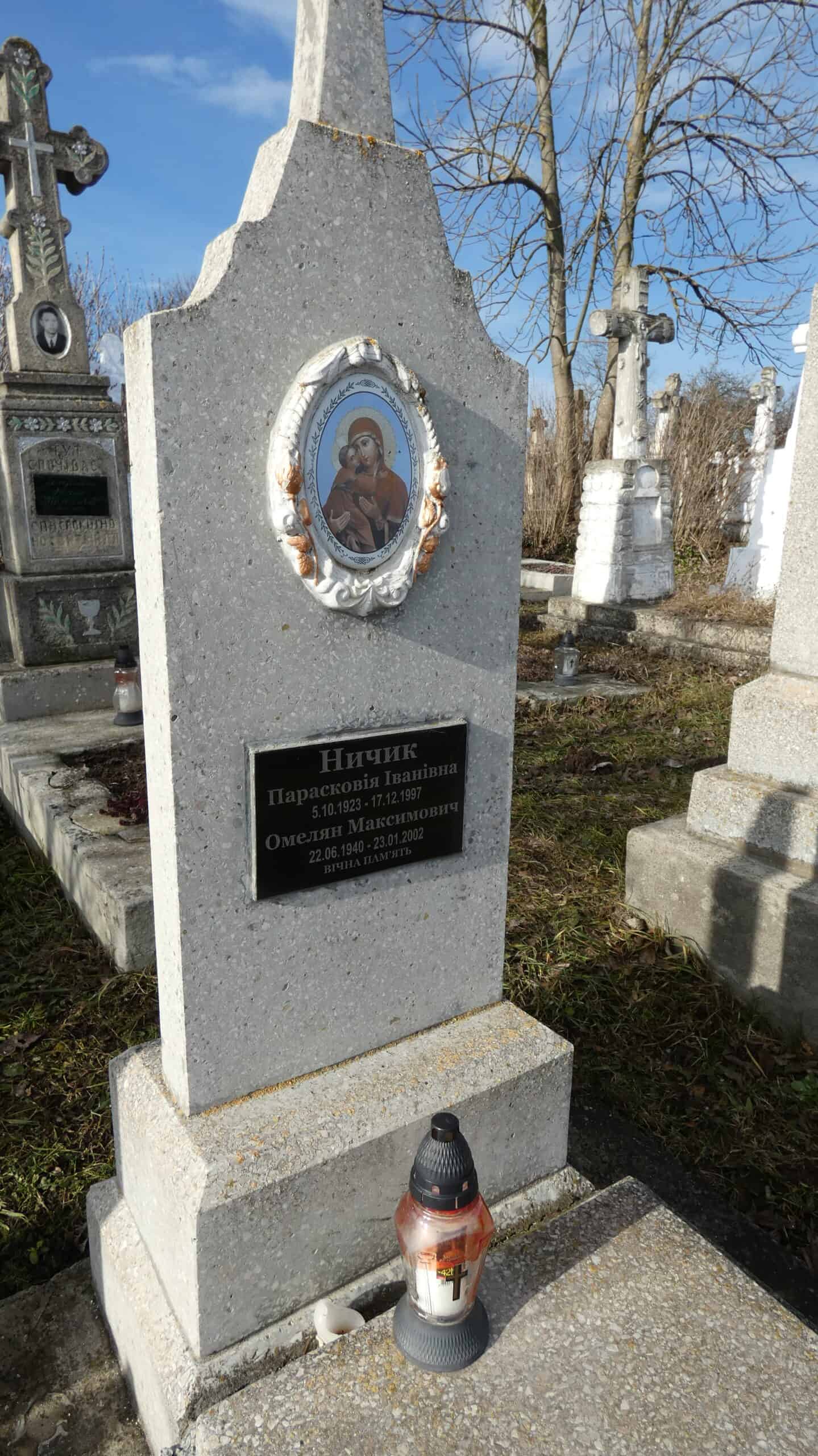 Похований (на): Ничик Парасковія Іванівна 5.10.1923-17.12.1997 Ничик Омелян Максимович 22.06.1940-23.01.2002