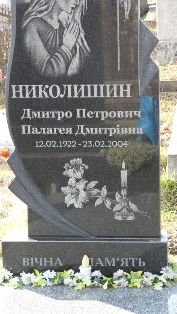 Похований (на): Николишин Дмитро Петрович Николишин Пелагея Дмитрівна 12.02.1922-23.02.2004