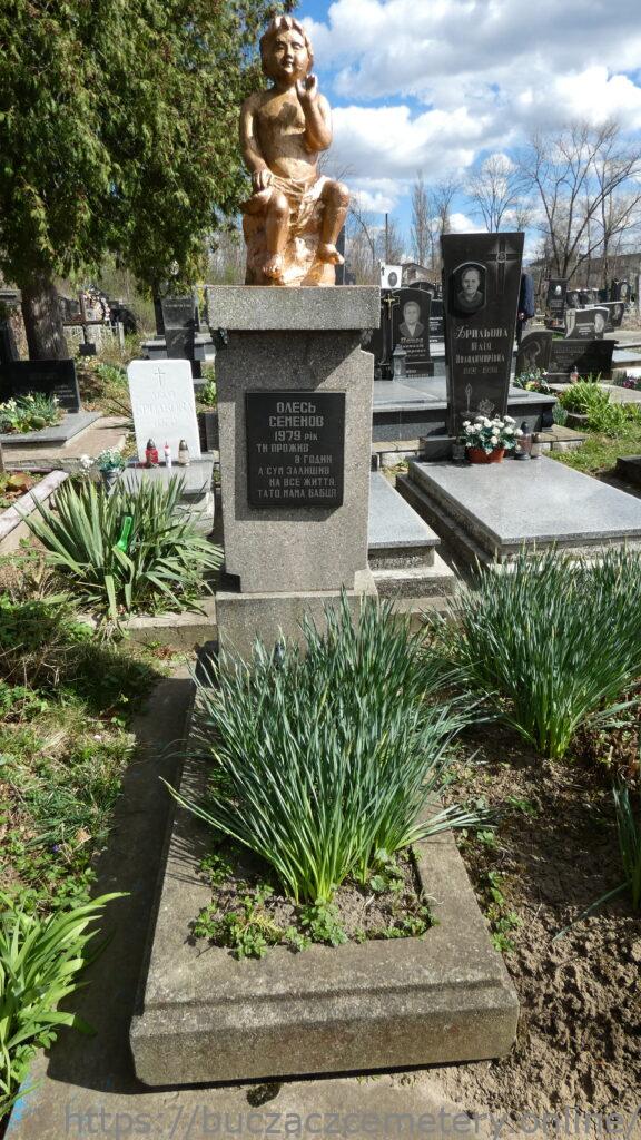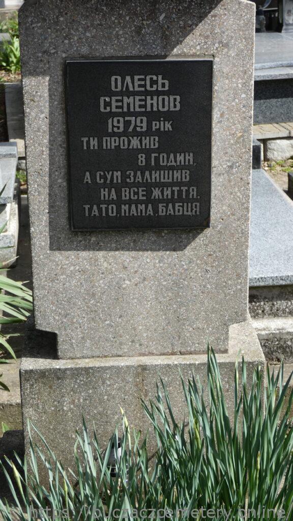 Напис: ОЛЕСЬ СЕМЕНОВ 1979 рік/ ти прожив 8 годин, а сум залишив на все життя. тато, мама, бабця
