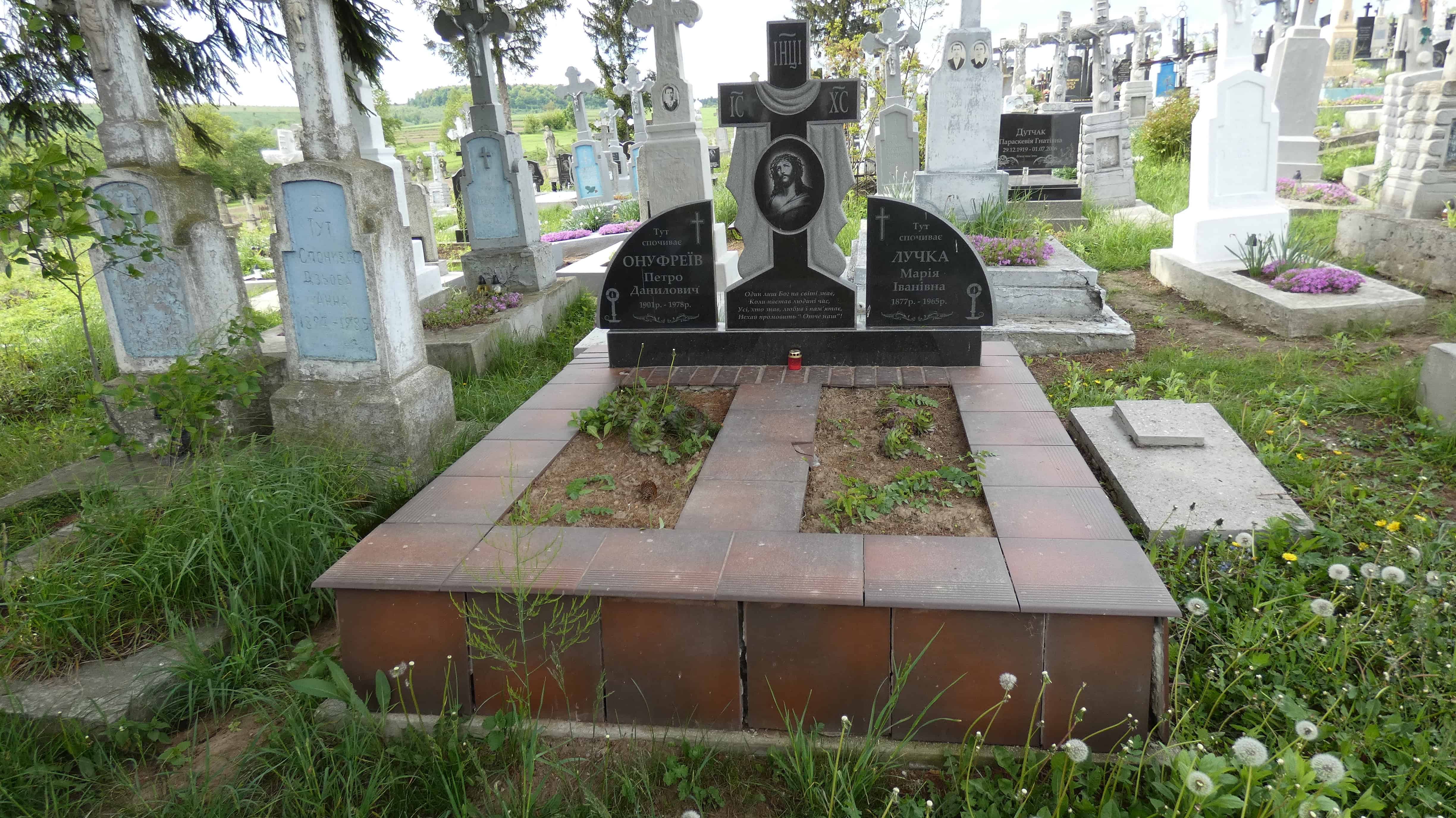 Похований (на): Онуфреїв Петро Данилович 1901-1978 Лучка Марія Іванівна 1877-1965