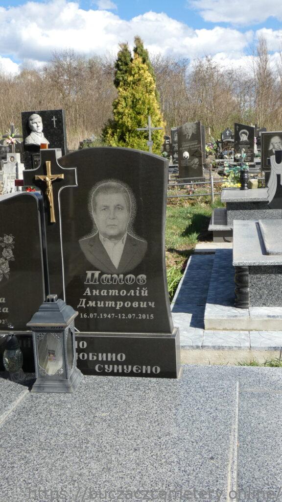 Напис: Панов Анатолій Дмитрович 16.07.1947-12.07.2015/Панови/ Дмитро Дорофійович 1910-1980/Ганна Яківна 1914-1992/ВІЧНА ПАМ’ЯТЬ/