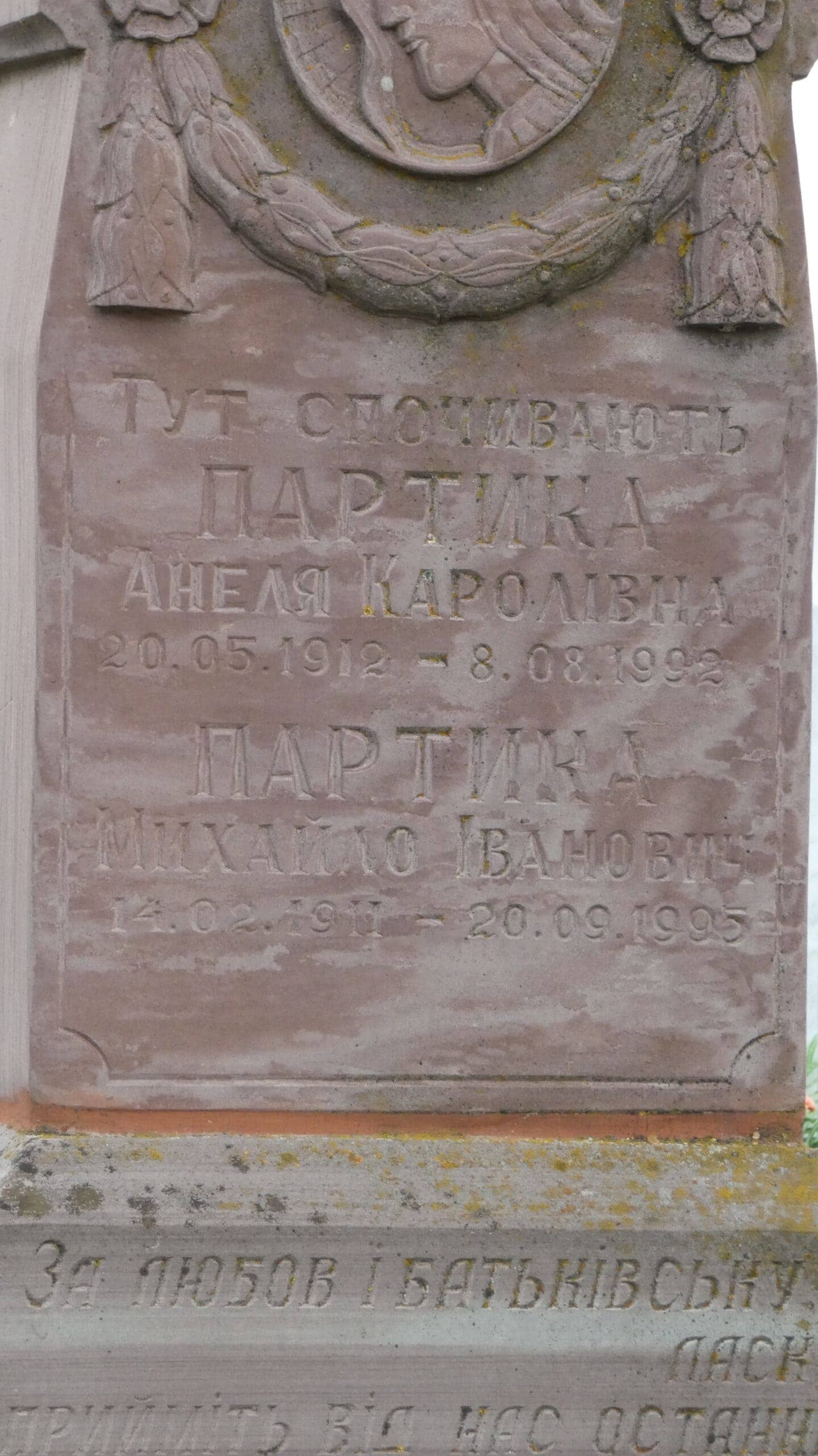 Похований (на): Партика Анеля Каролівна 20.05.1912-08.08.1992 Партика Михайло Іванович 14.02.1911-20.09.1995