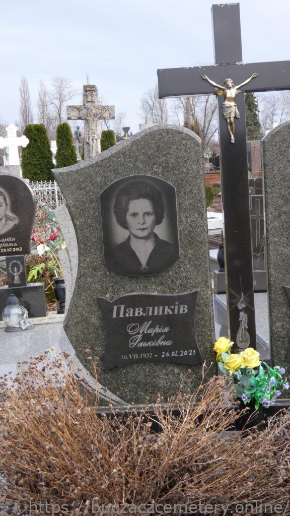 Напис: Павликів Марія Ільківна 16.VII.1932-26.01.2021// Павликів Йосиф Якович 25.ІІ.1925-27.V.2009//.