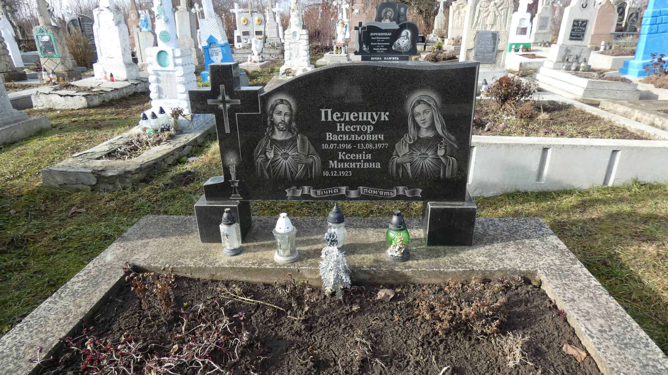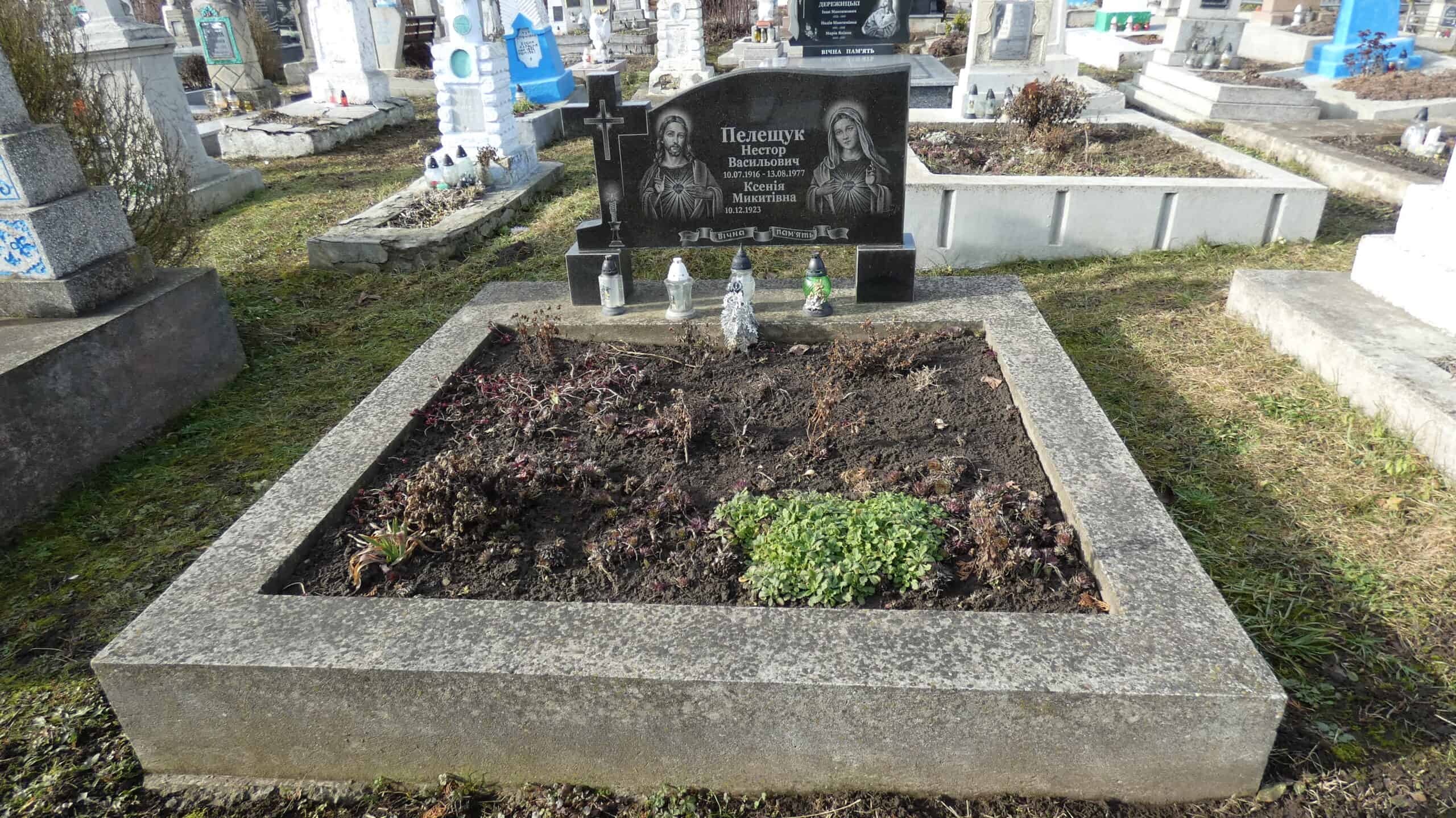Похований (на): Пелещук Нестор Васильович 10.07.1916-13.088.1977 Пелещук Ксенія Микитівна 10.12.1923