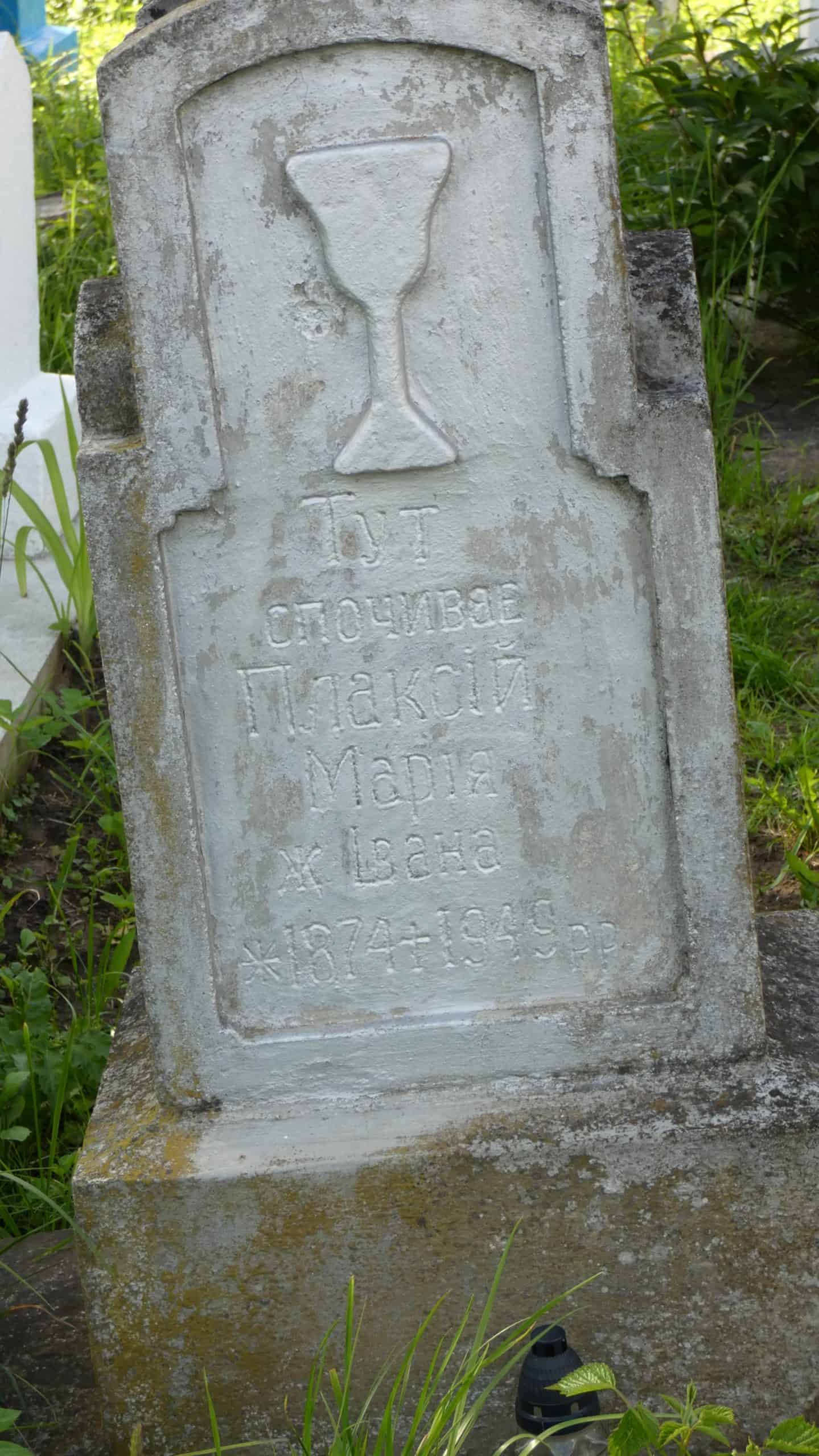 Похований (на): Плаксій Марія ж. Івана 1874-1949