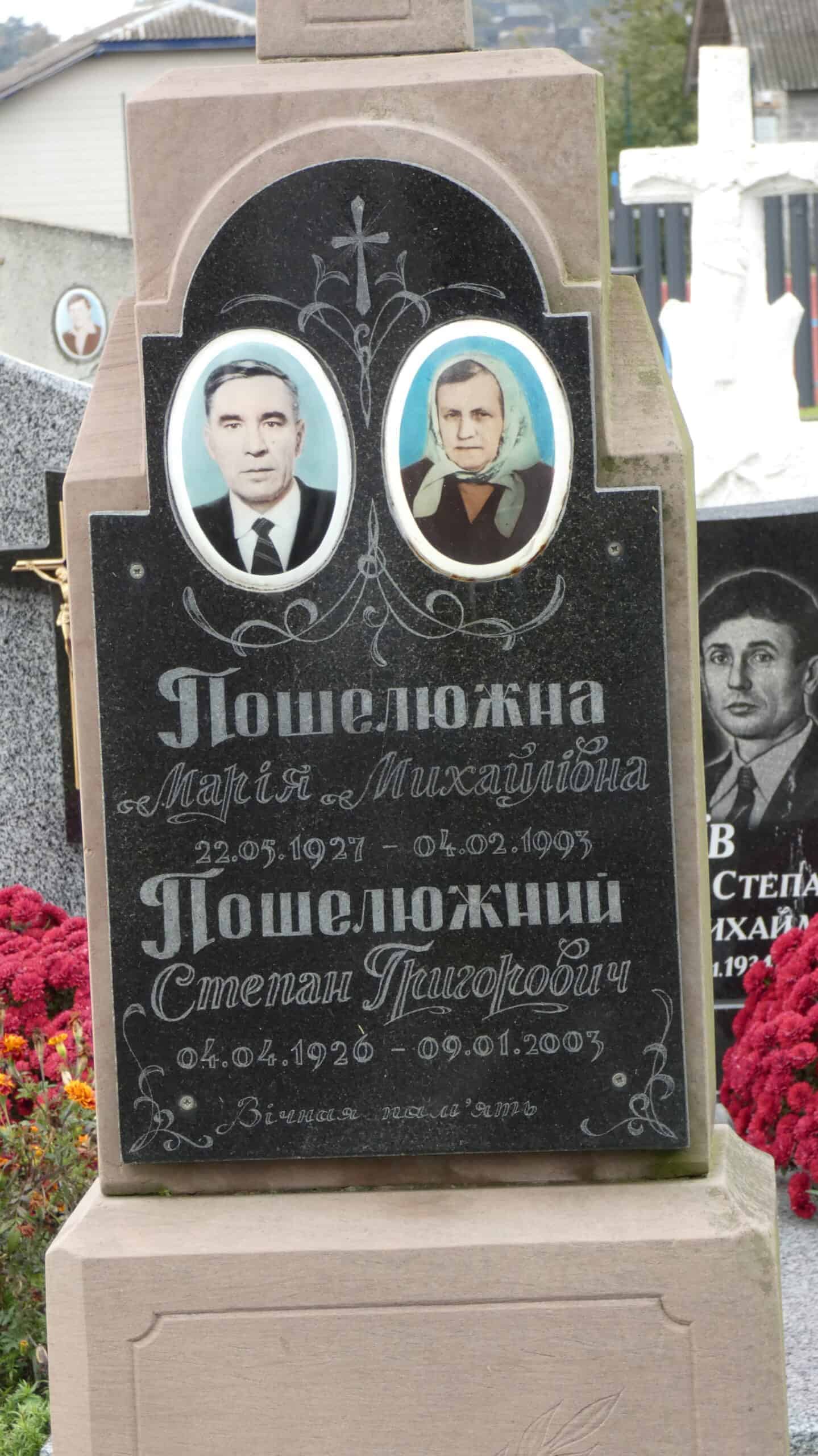 Похований (на): Пошелюжна Марія Михайлівна 22.05.1927-04.02.1993 Пошелюжний Степан Григорович 04.04.1926-09.01.2003