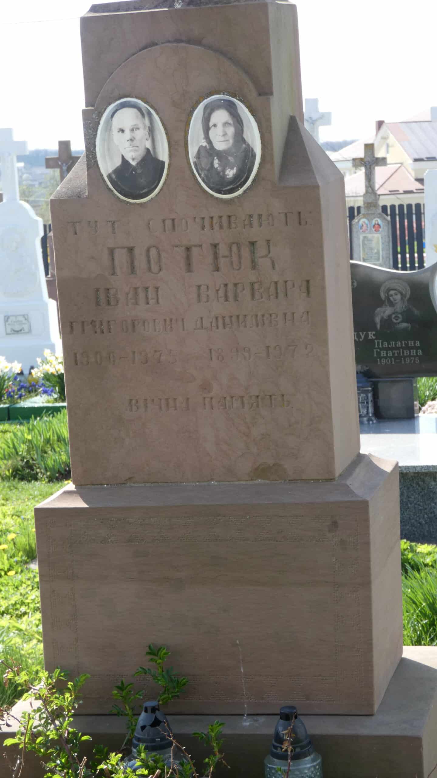 Похований (на): Потюк Іван Григорович 1900–1975 Потюк Варвара Данилівна 1899–1972